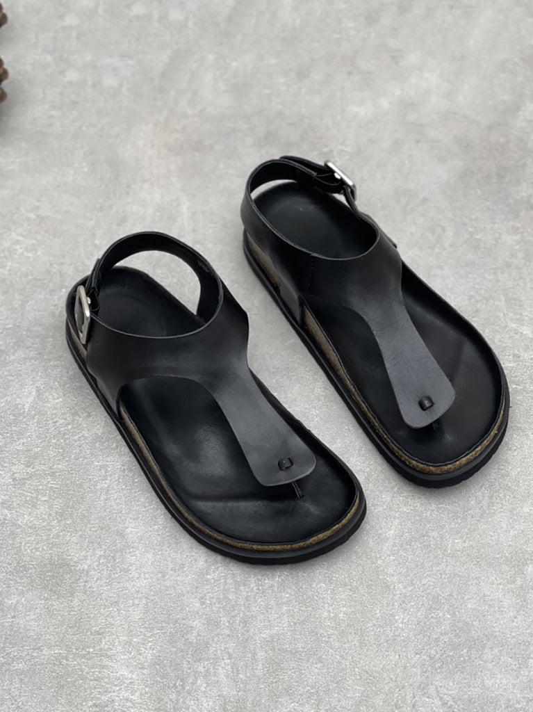 Women Vintage Summer Genuine Leather Low Heel Sandals