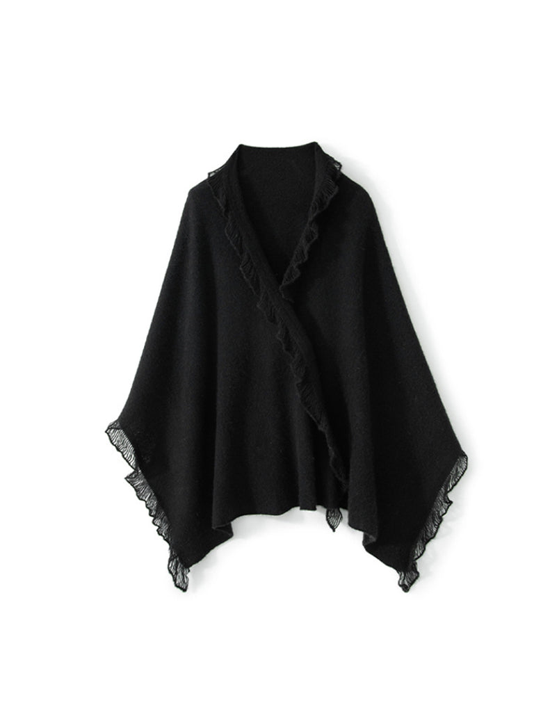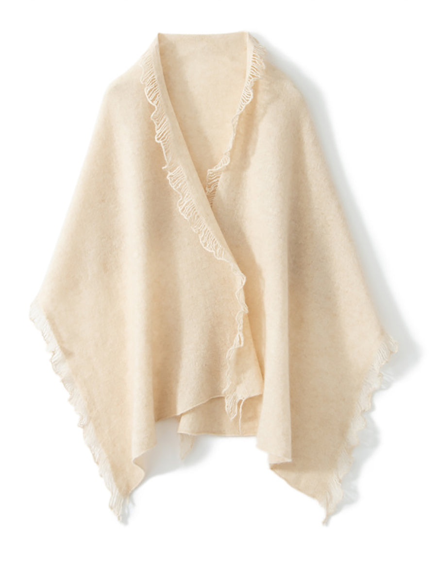 Women Vintage Warm Cashmere Solid Tassel Scarf
