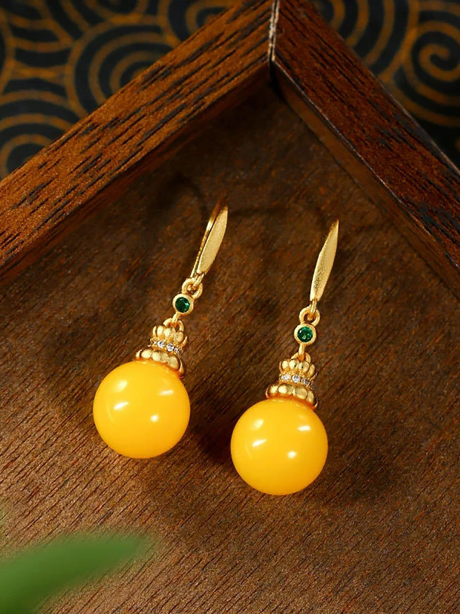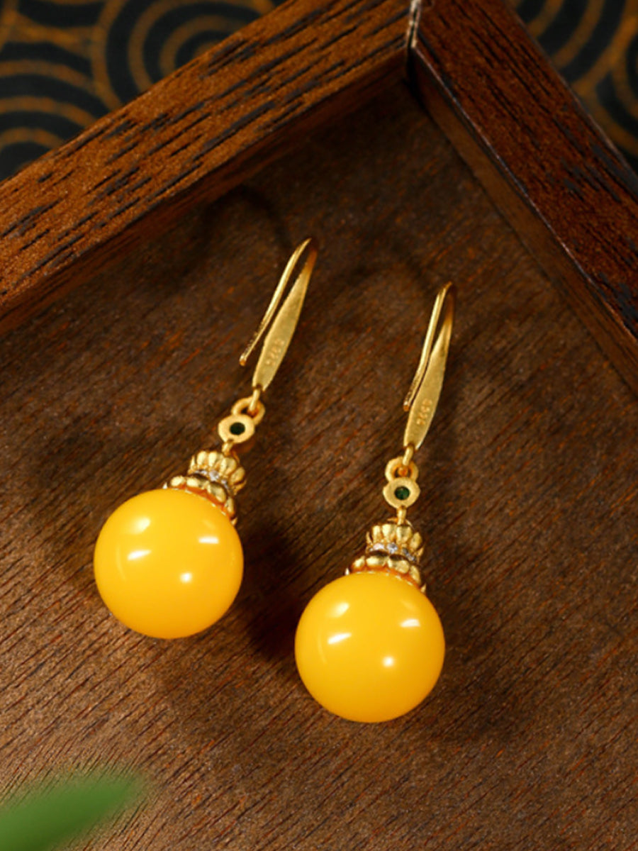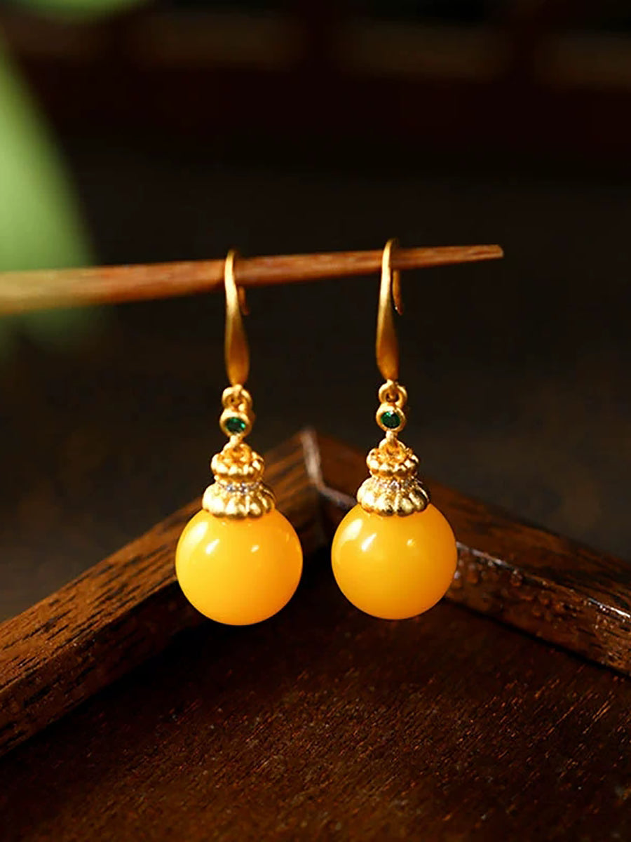 Women Vintage Yellow Jade Earrings