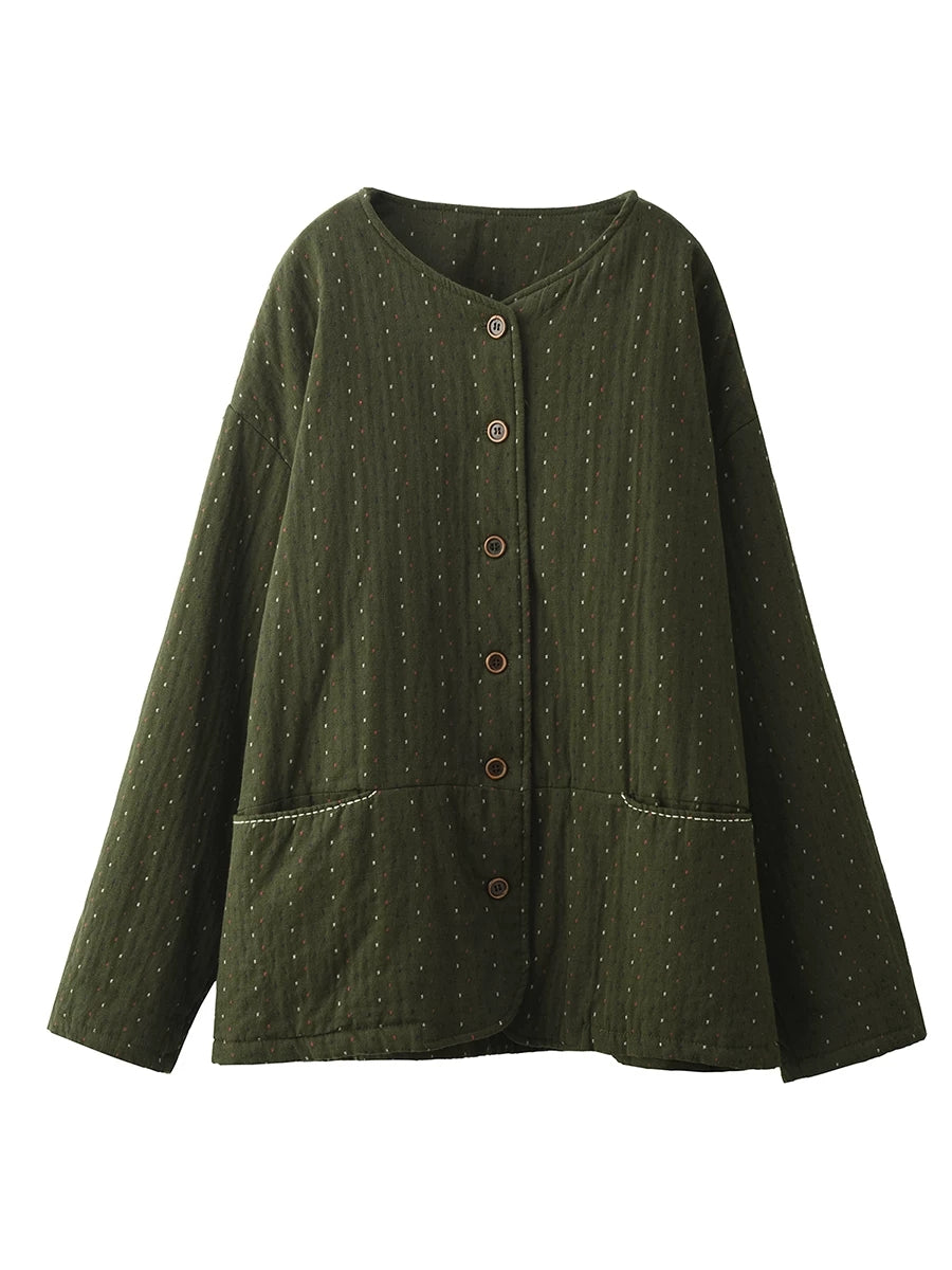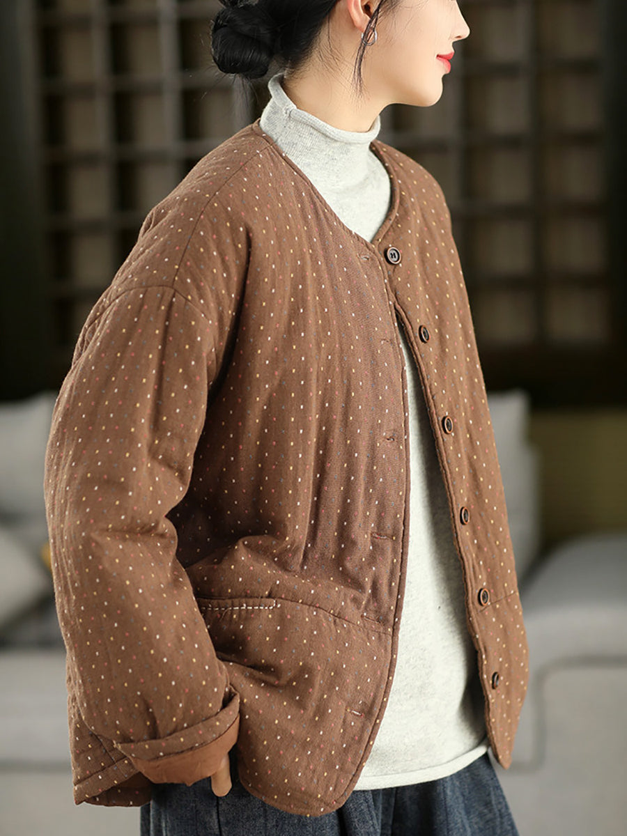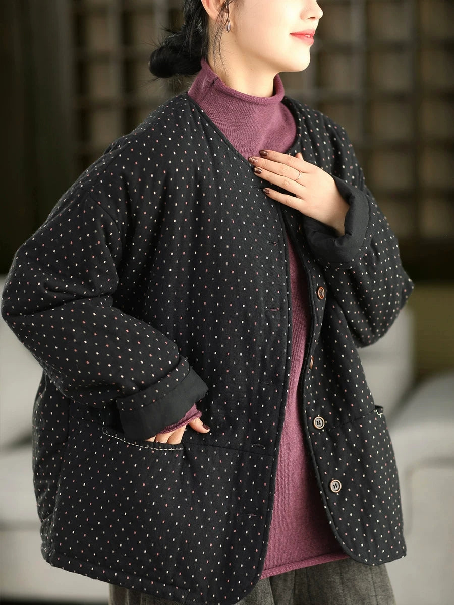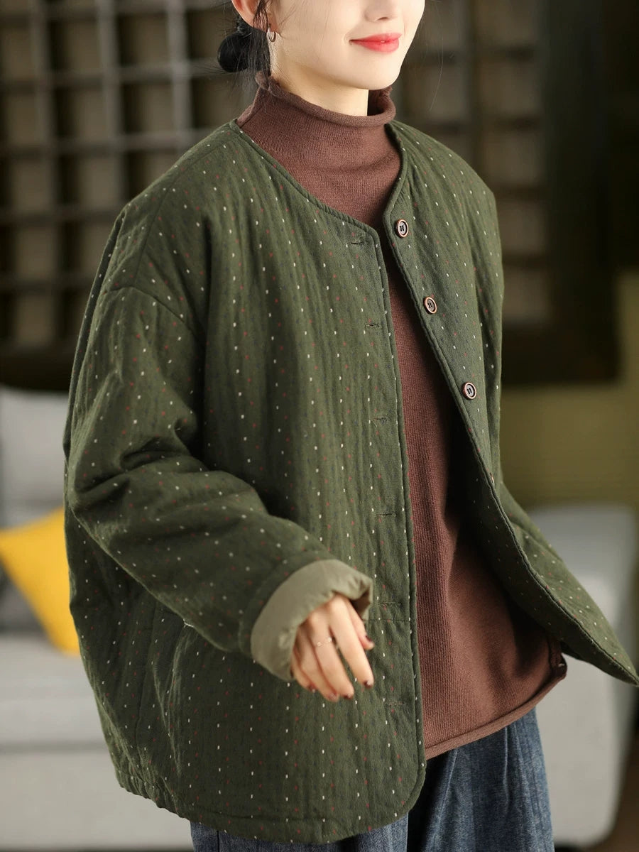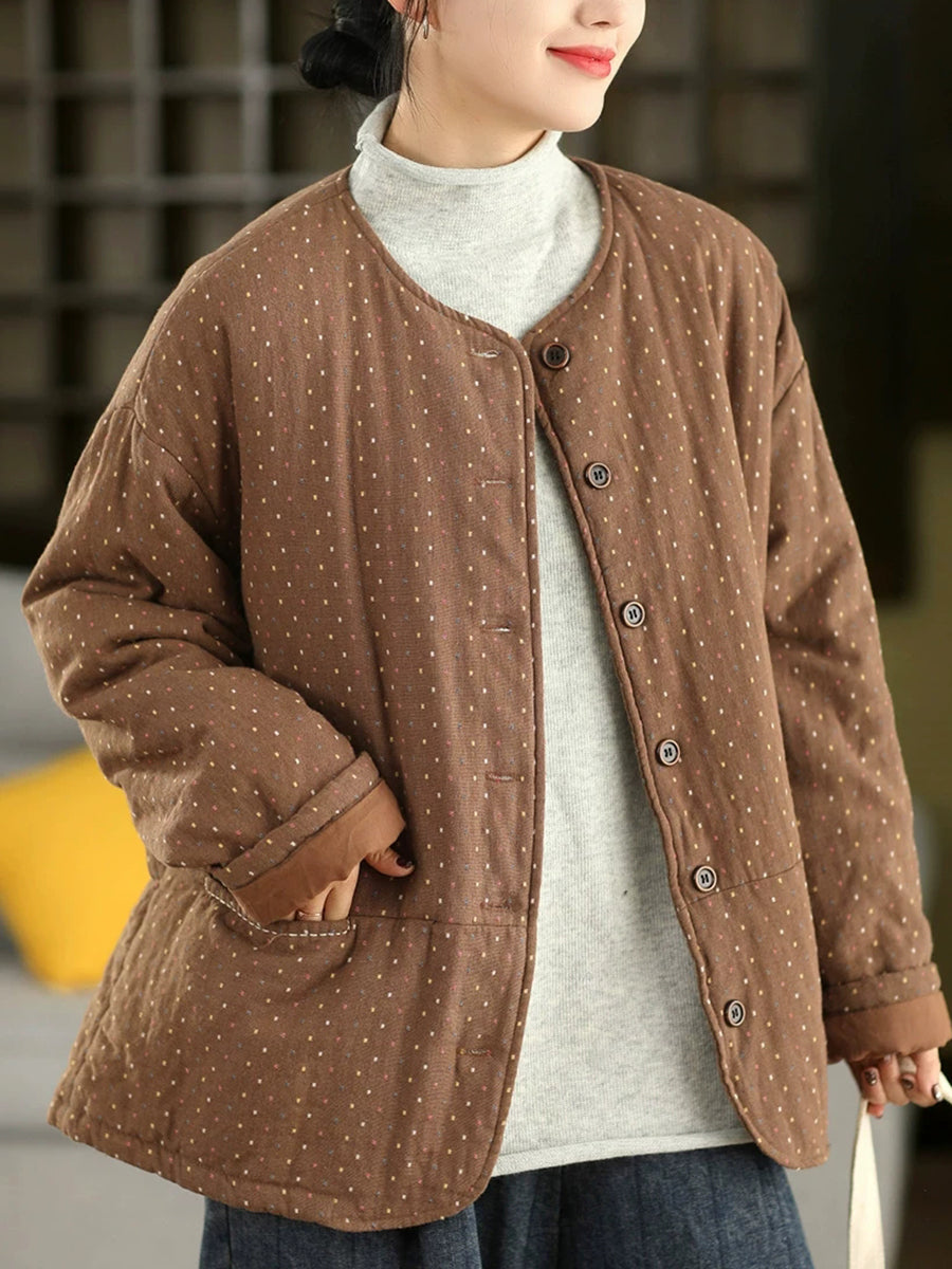 Women Winter Artsy Dot O-Neck 100%Cotton Padded Coat