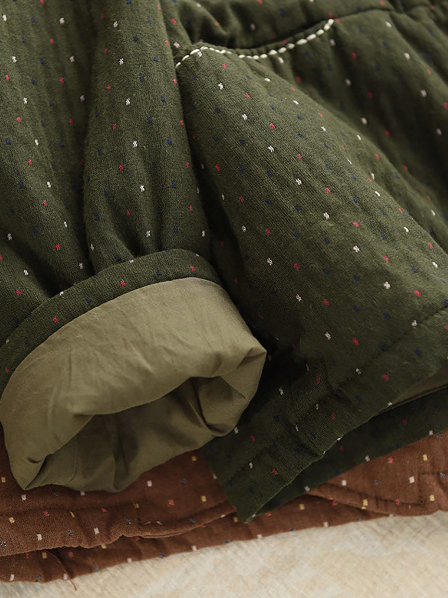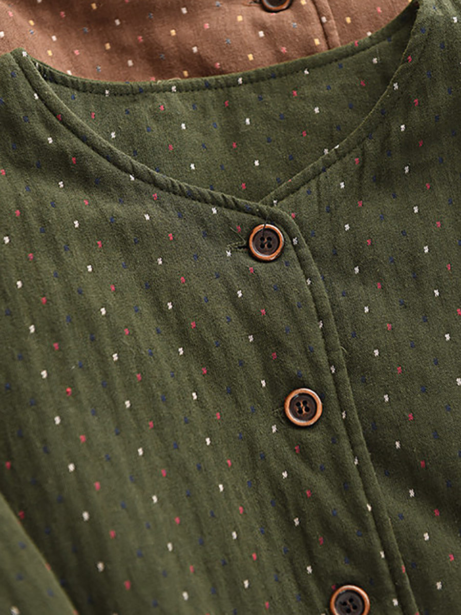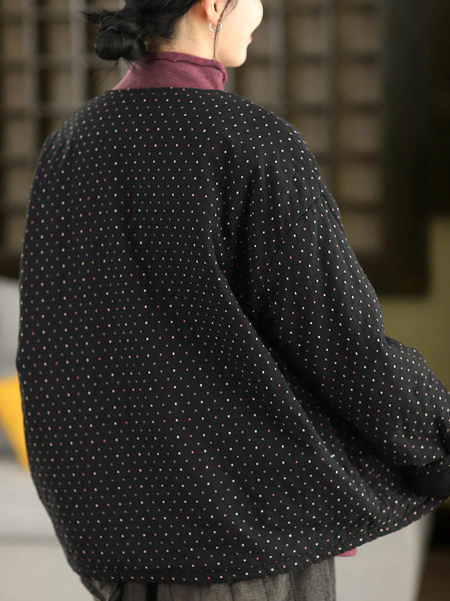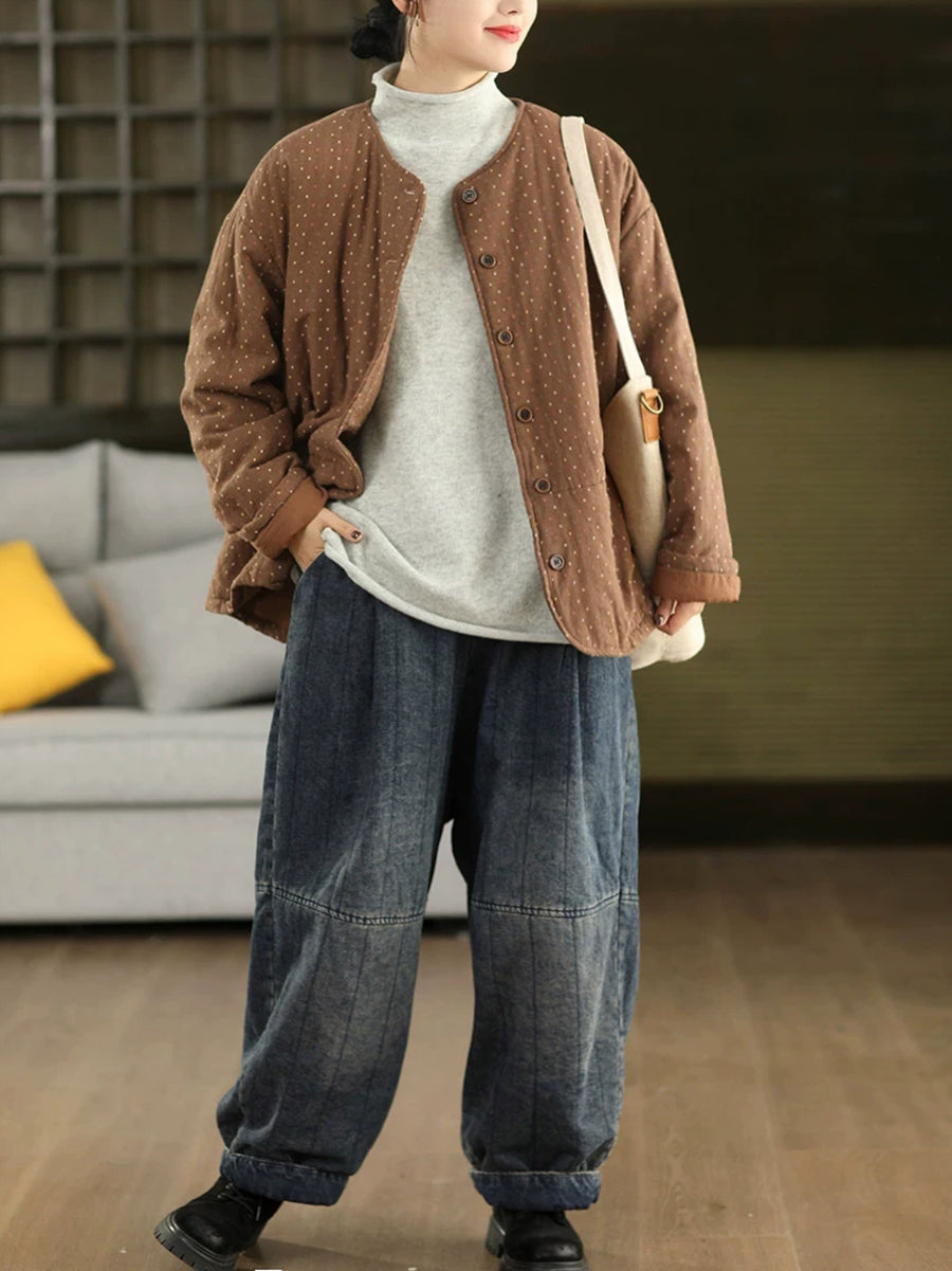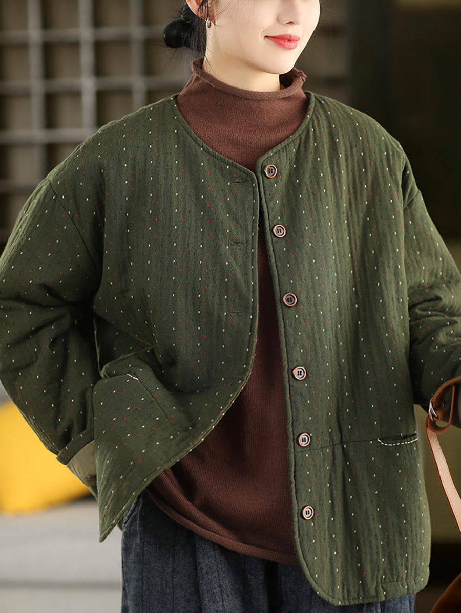 Women Winter Artsy Dot O-Neck 100%Cotton Padded Coat