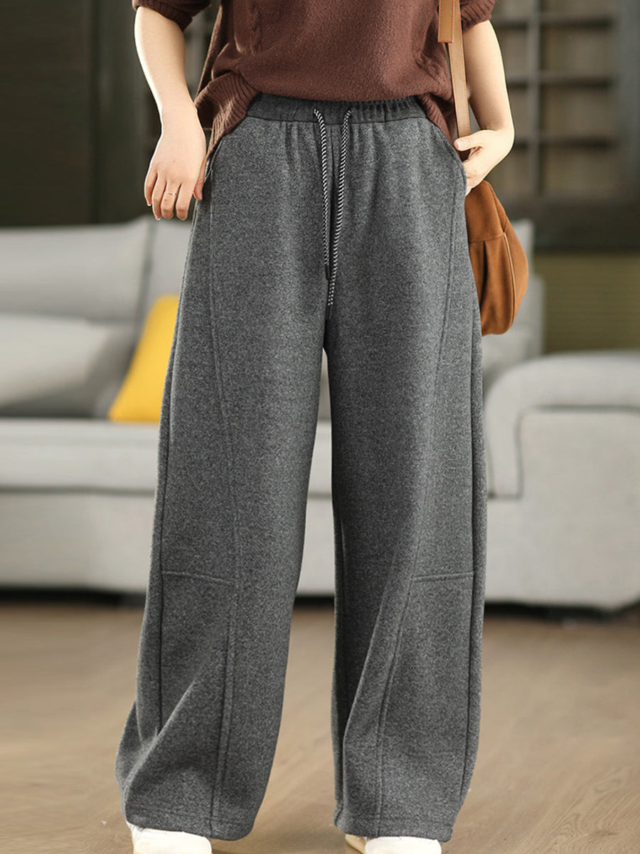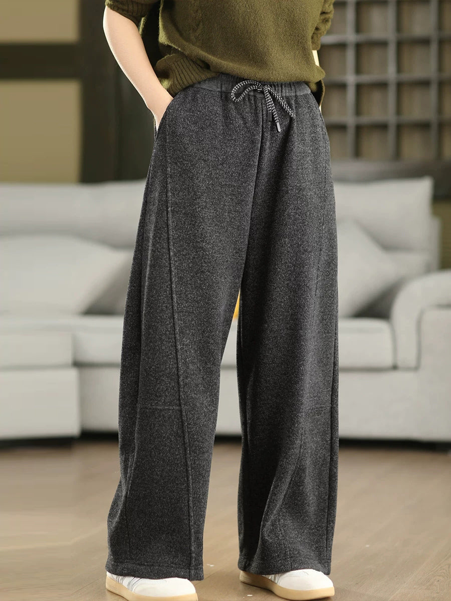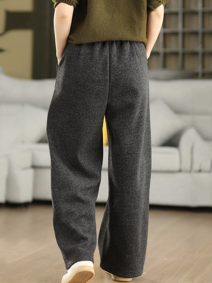 Women Winter Artsy Pure Color Fleece-lined Wide-leg Pants