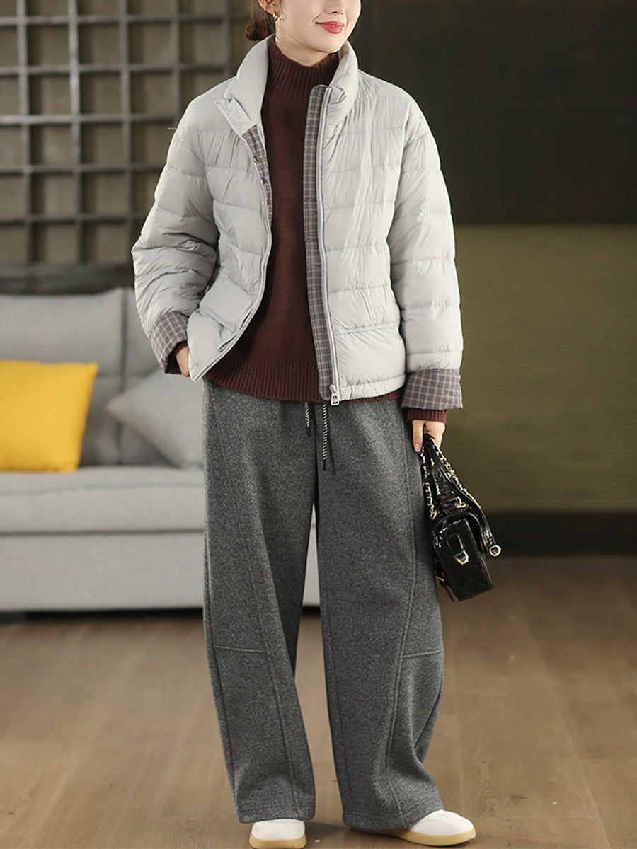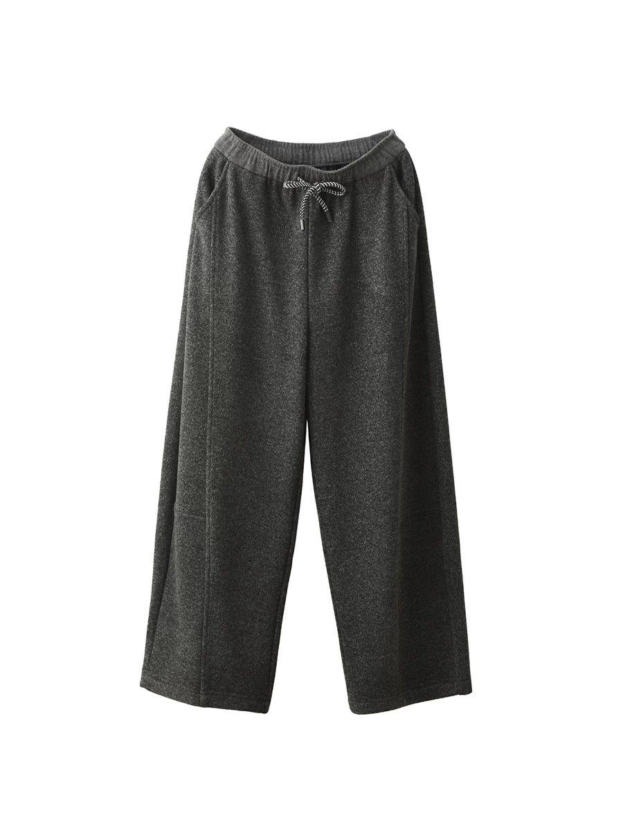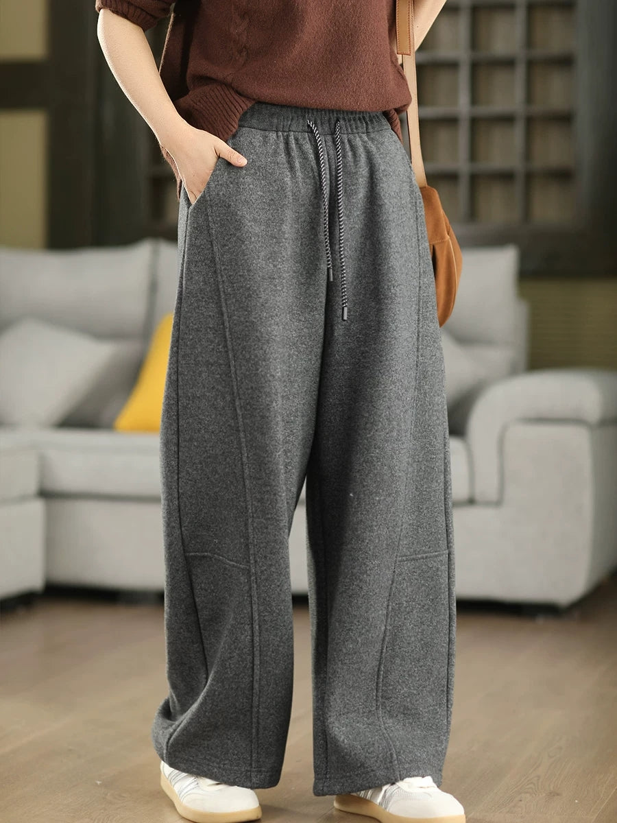 Women Winter Artsy Pure Color Fleece-lined Wide-leg Pants