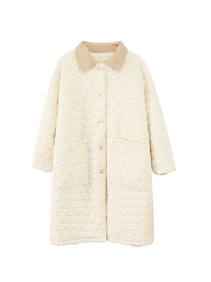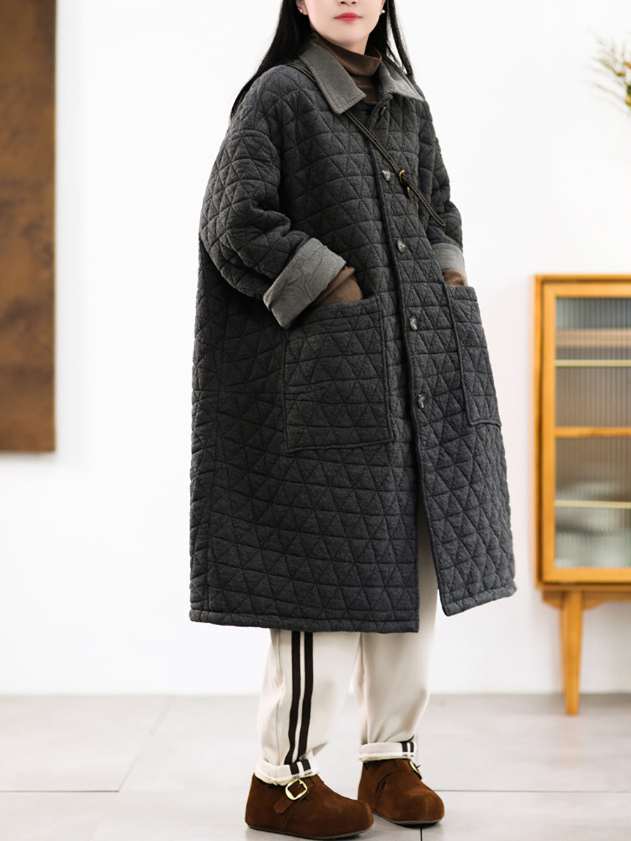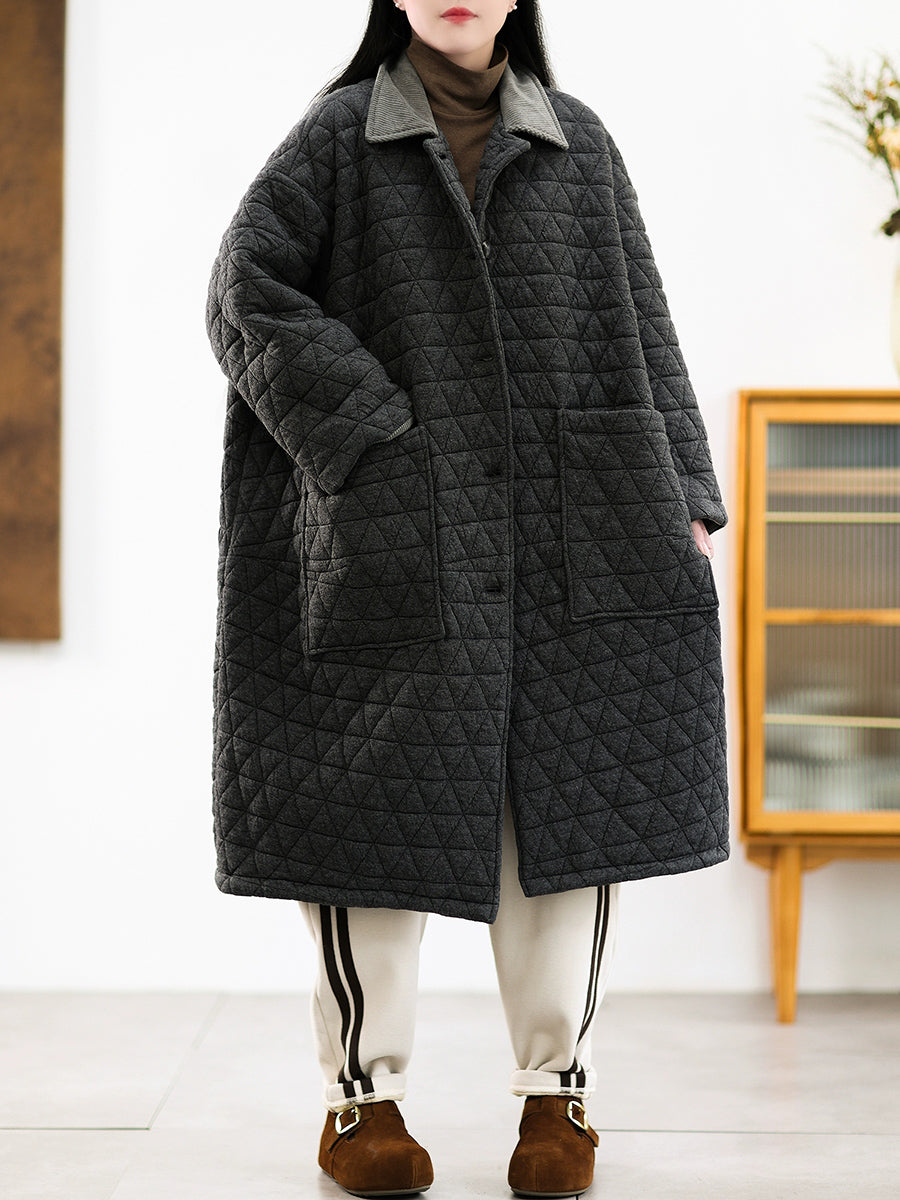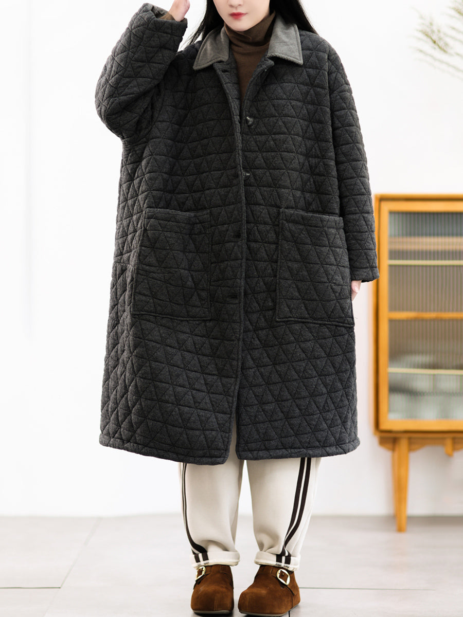 Women Winter Artsy Pure Color Padded Turn-down Collar Coat
