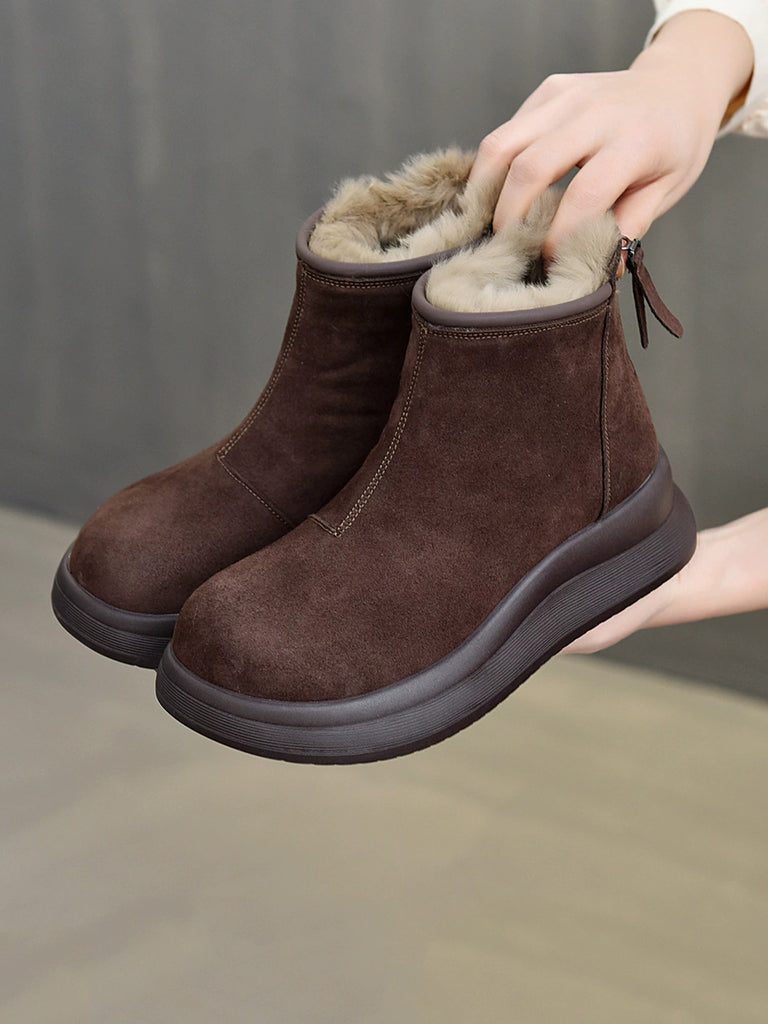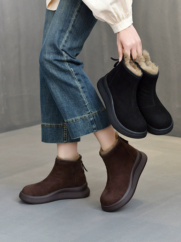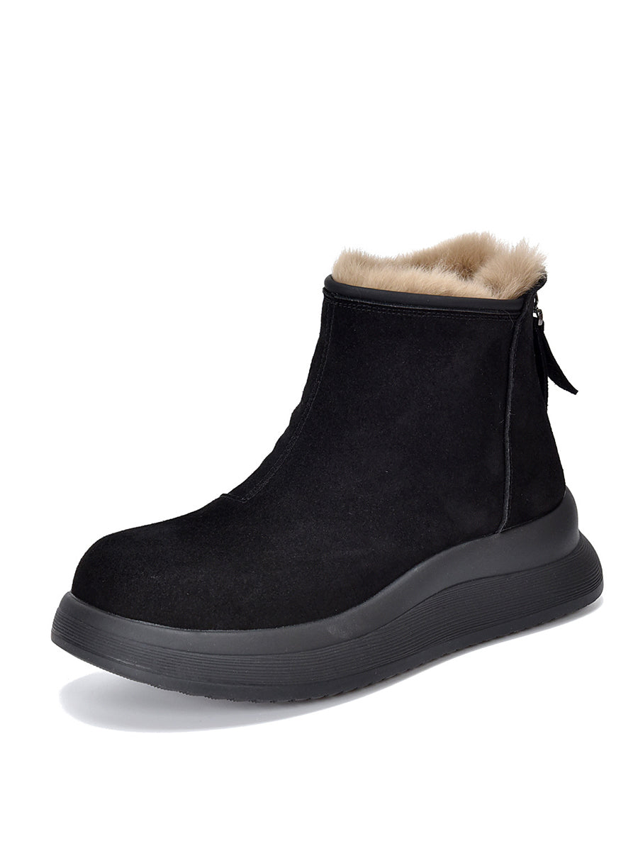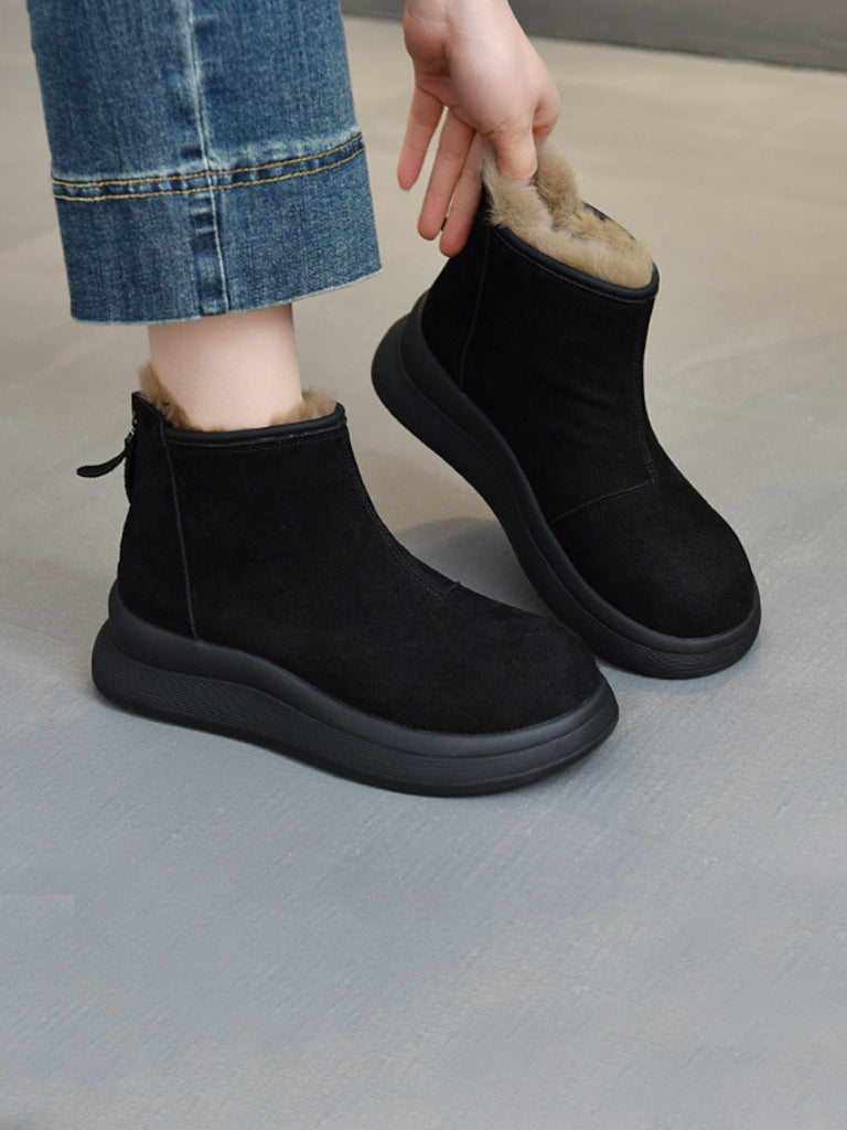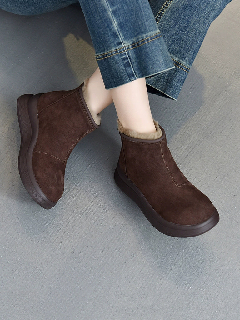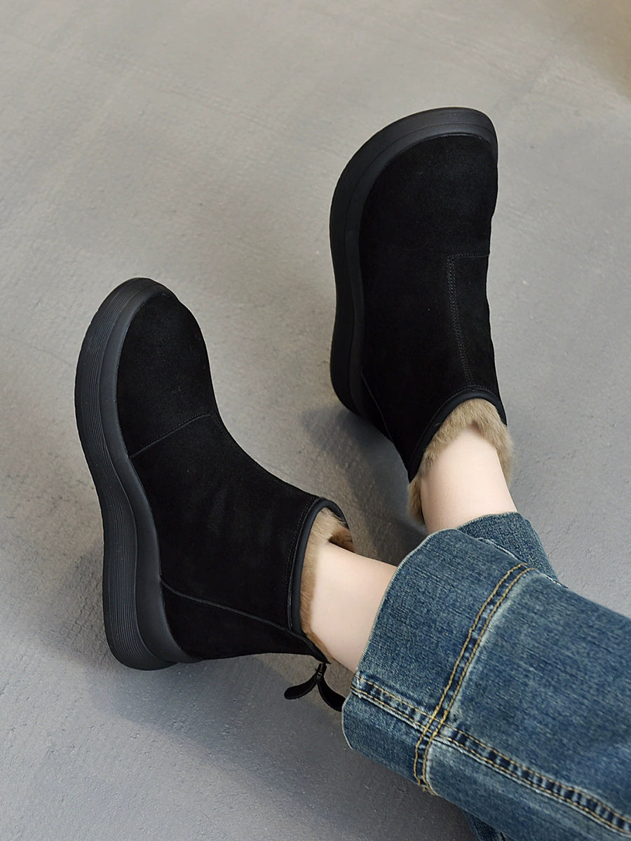 Women Winter Genuine Leather Fleece-lined Chelsea Boots