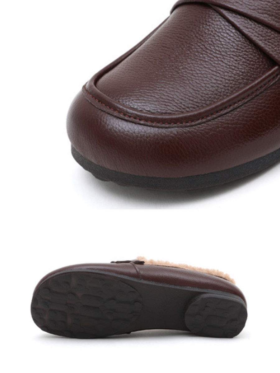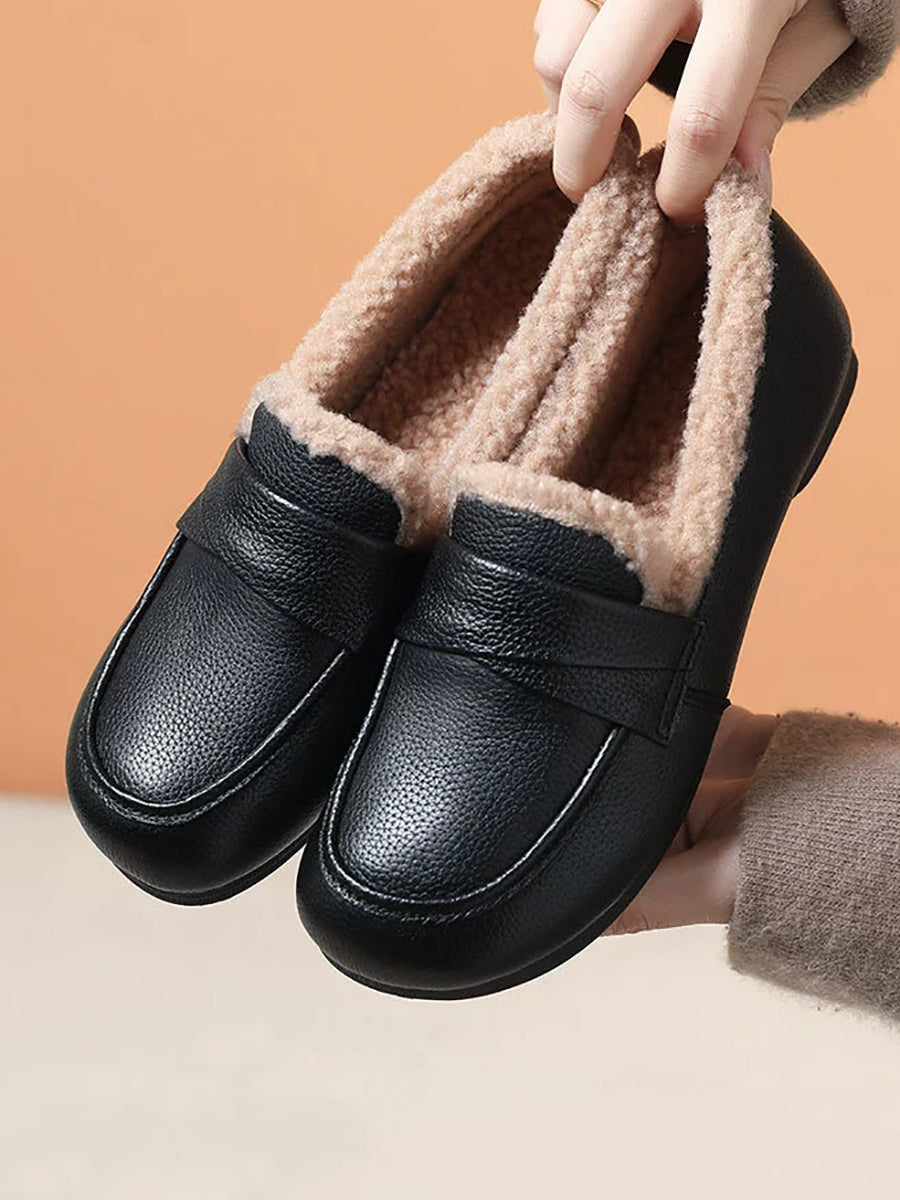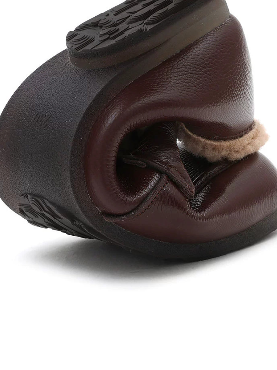 Women Winter Genuine Leather Spliced Fleece-lined Shoes