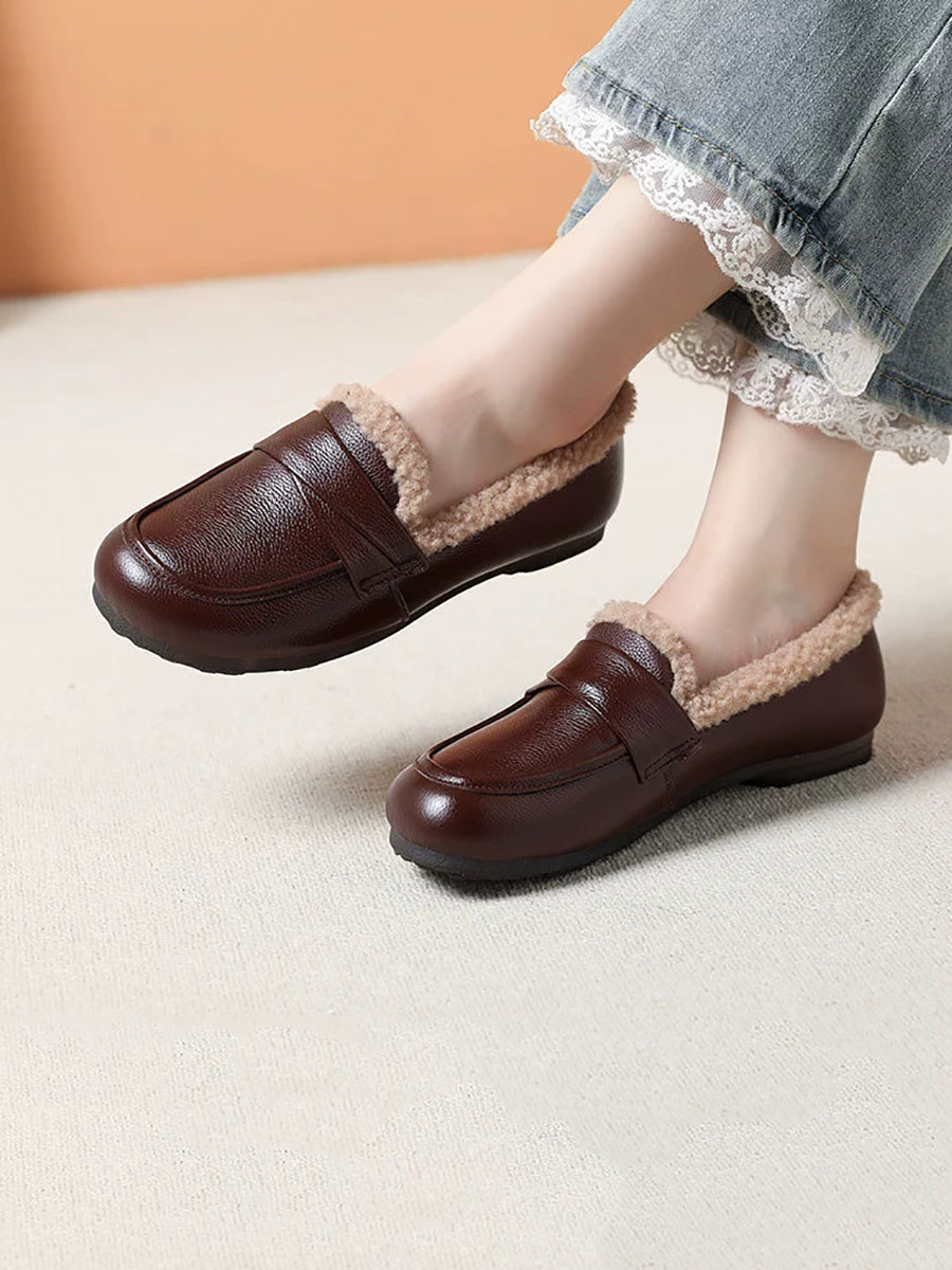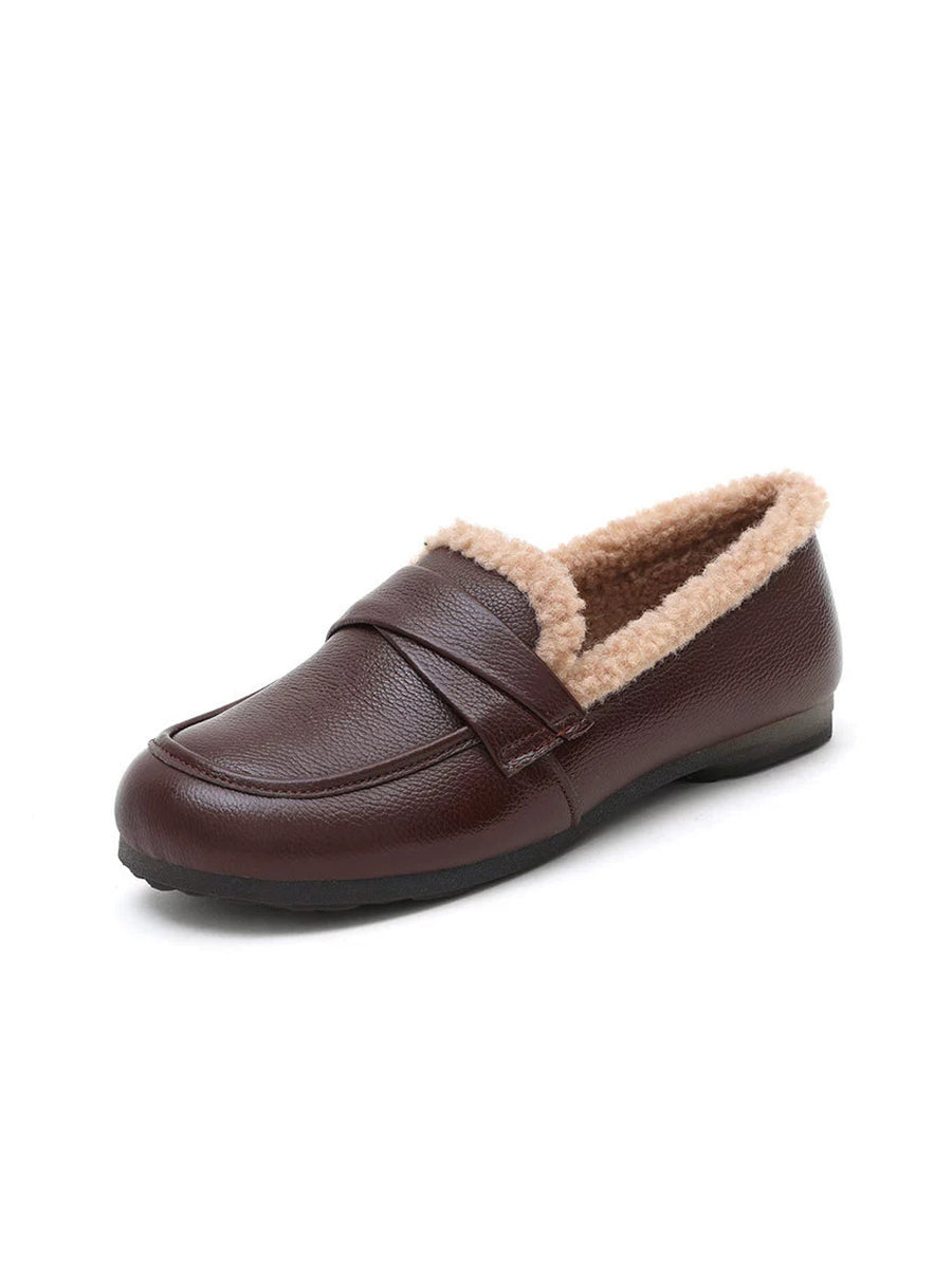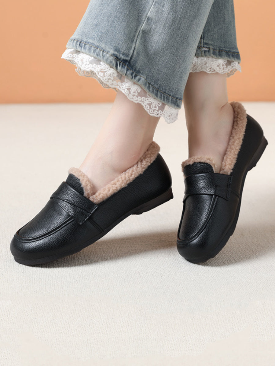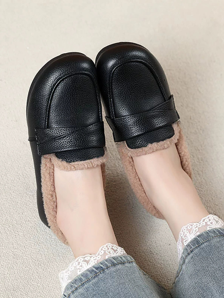 Women Winter Genuine Leather Spliced Fleece-lined Shoes