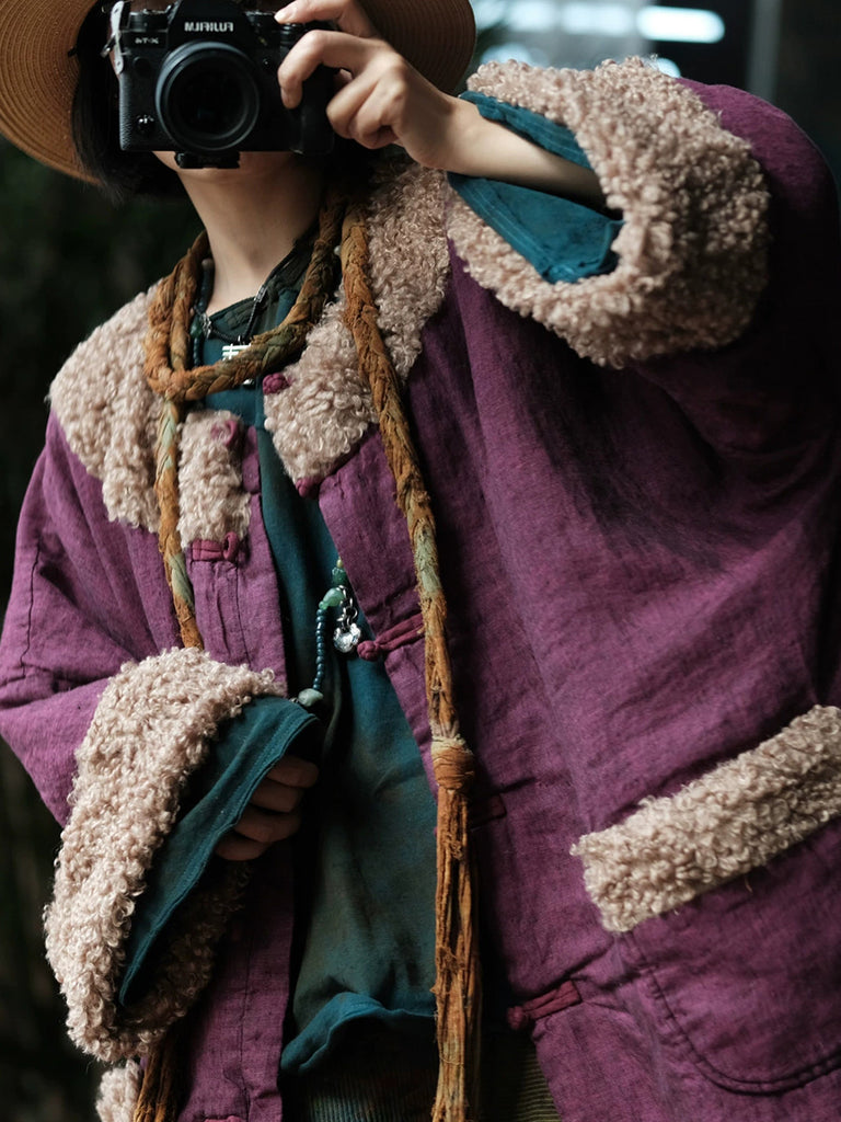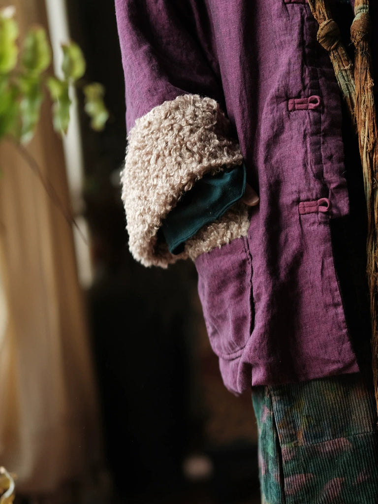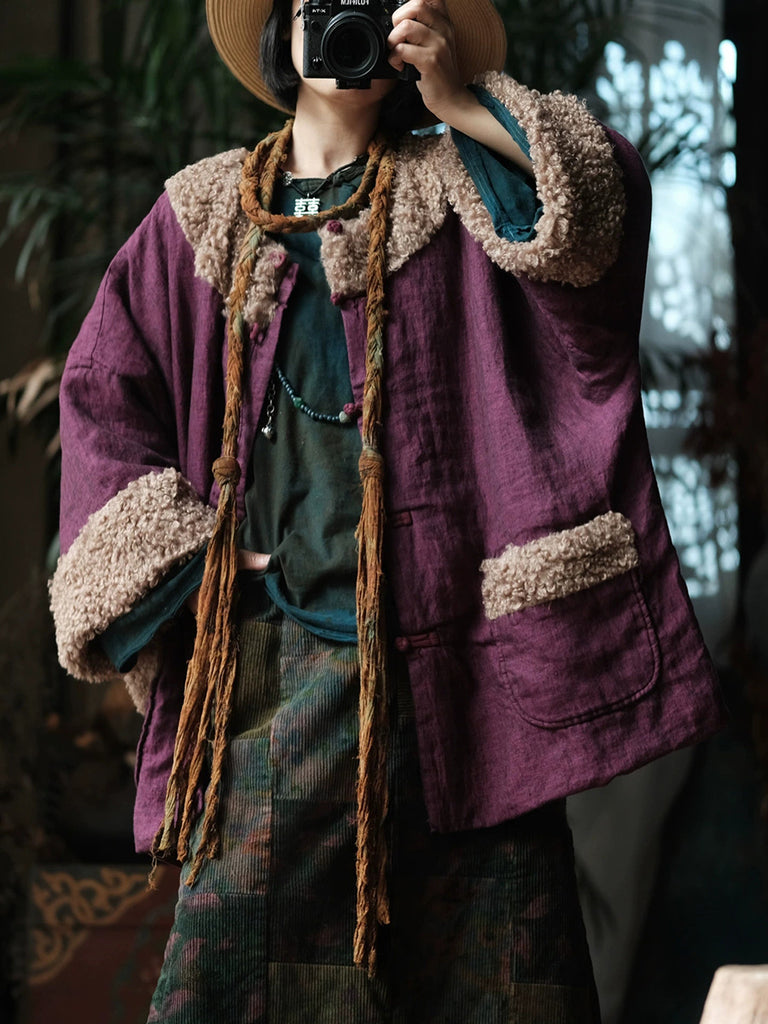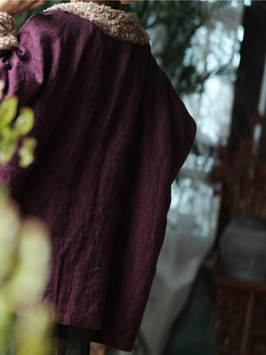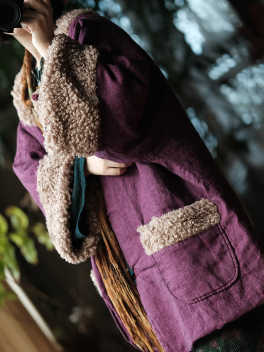 Women Winter Pure Color Fleece Spliced Cotton O-Neck Coat
