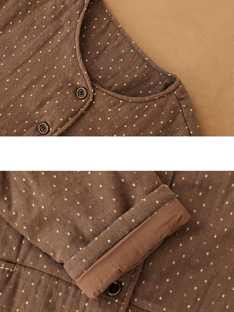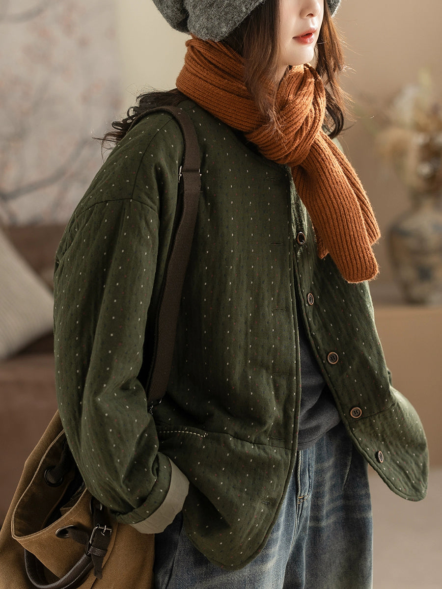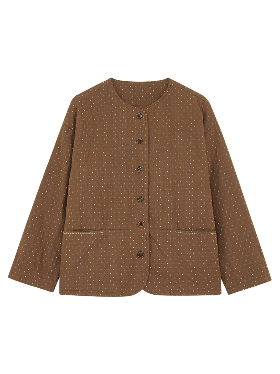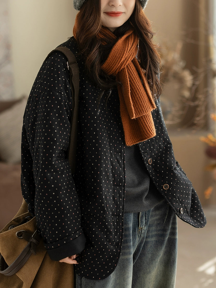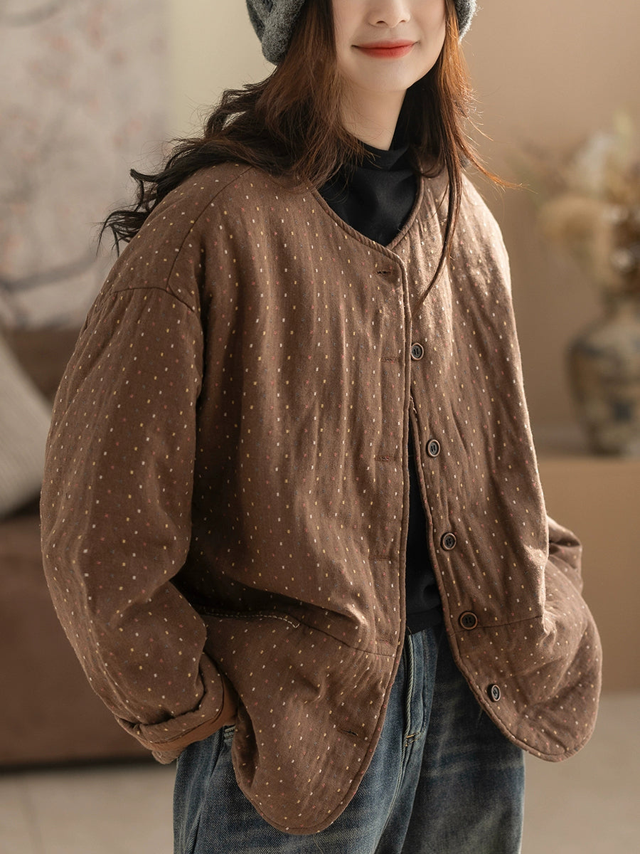Women Winter Retro Dot O-Neck Padded Coat