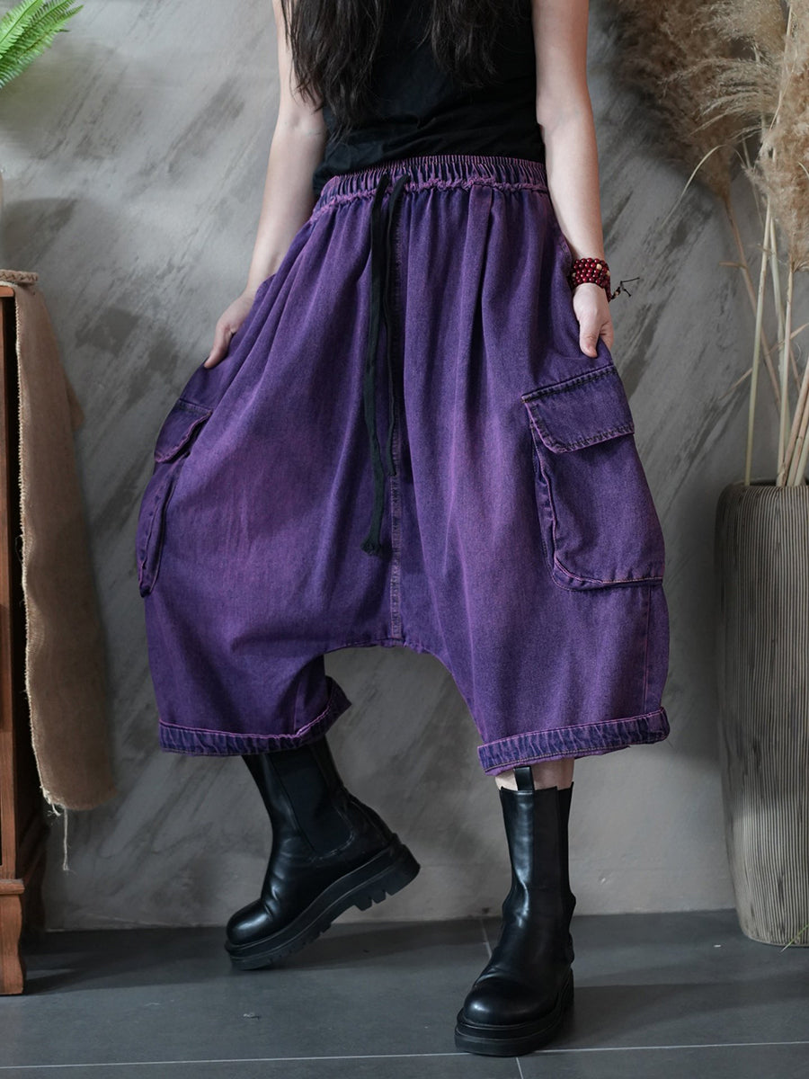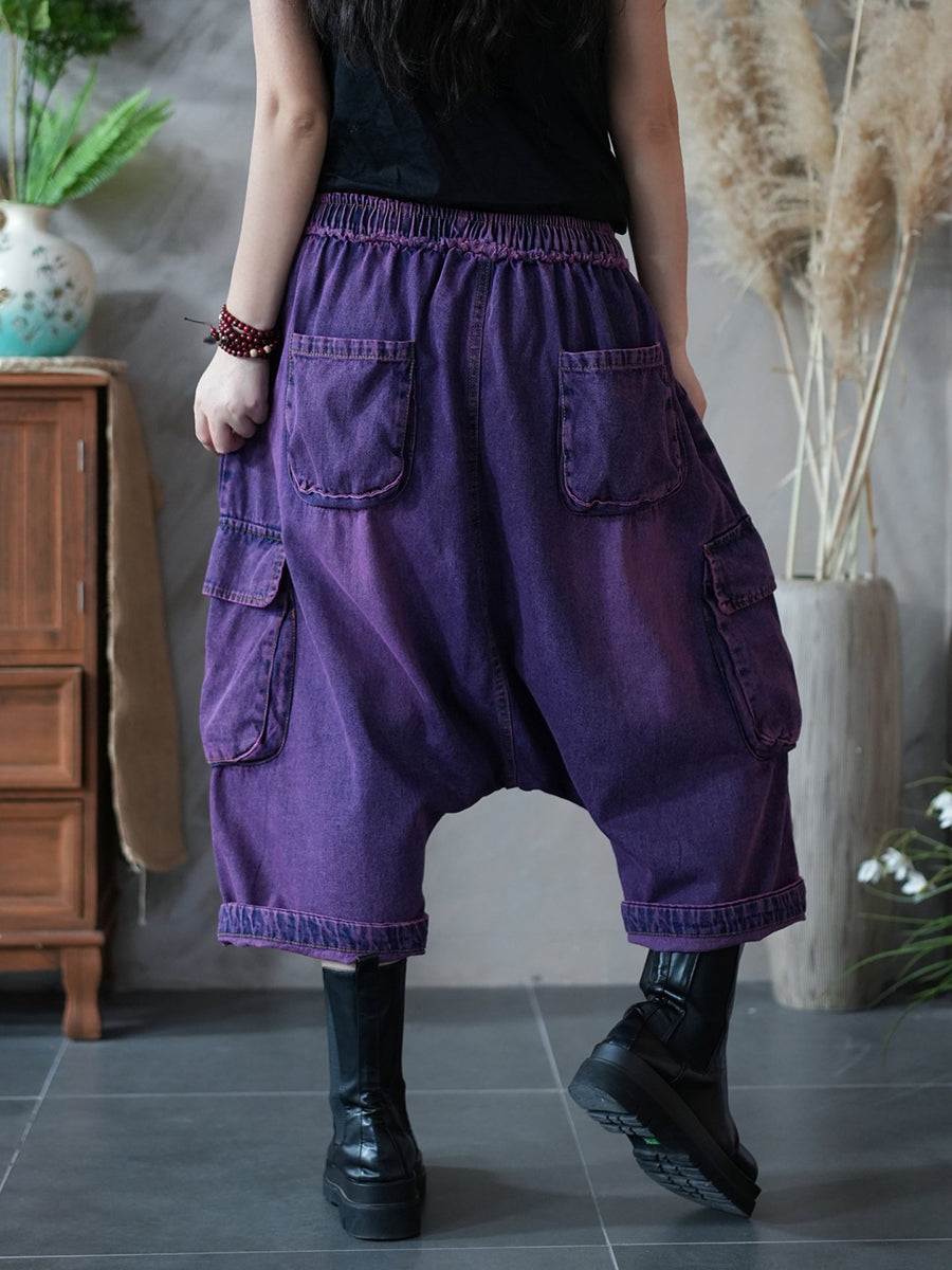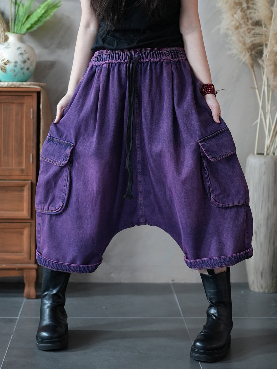 Women Winter Retro Low Crotch Cotton Denim Pants