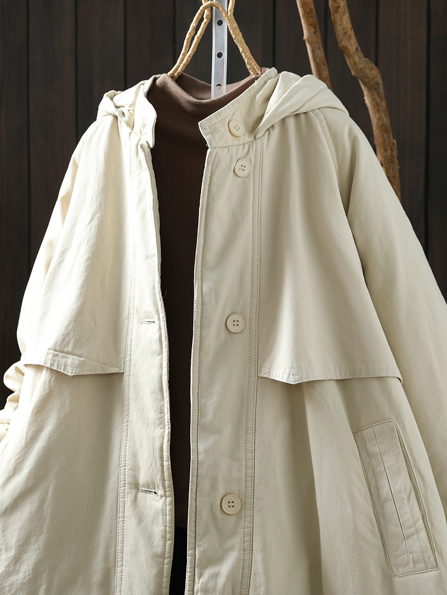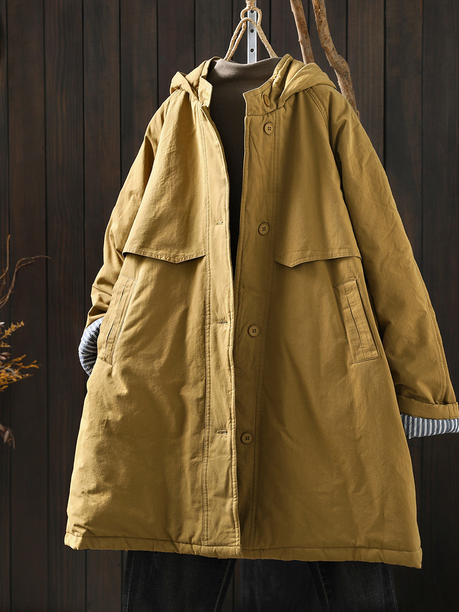 Women Winter Retro Pure Color Hooded Padded Coat