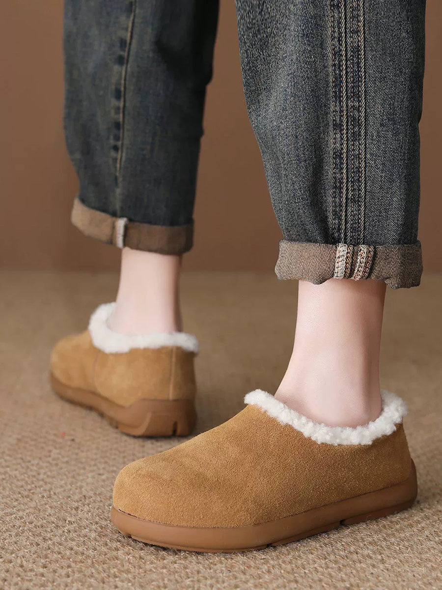 Women Winter Suded Leather Fleece-lined Flat Shoes
