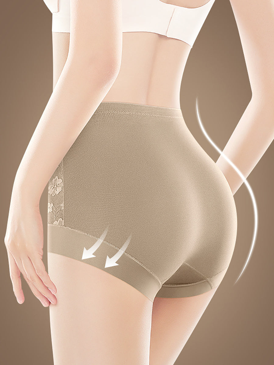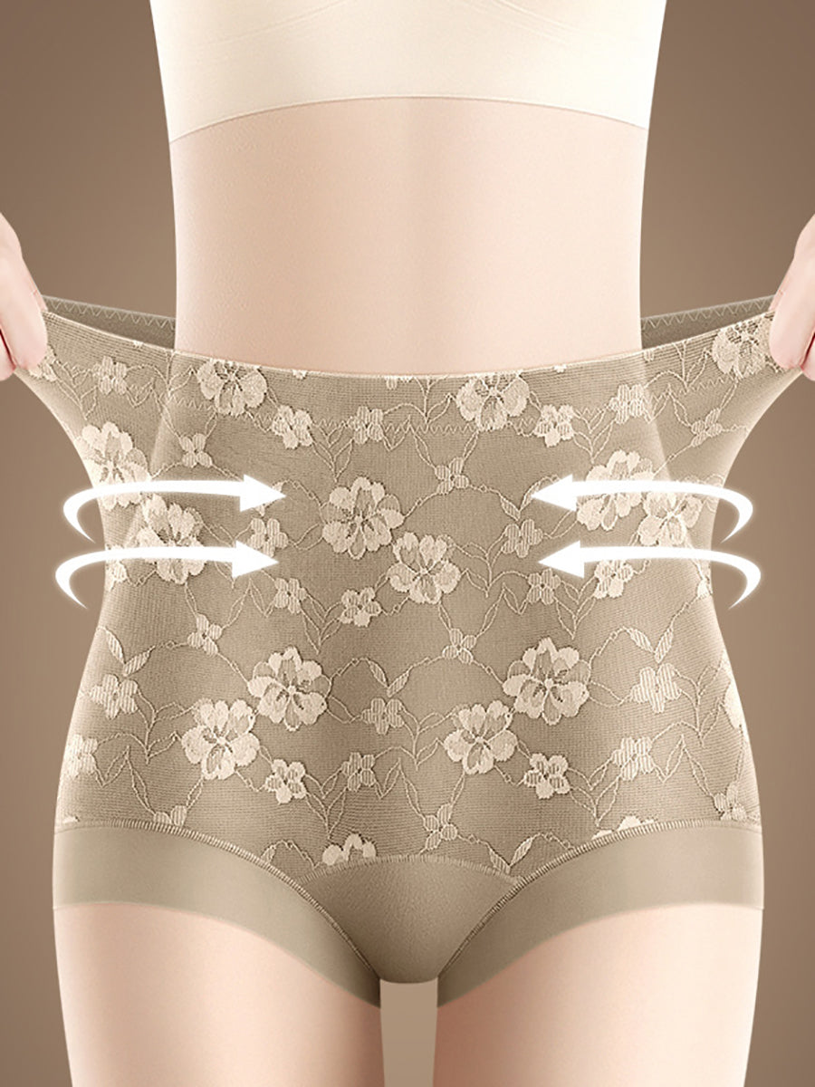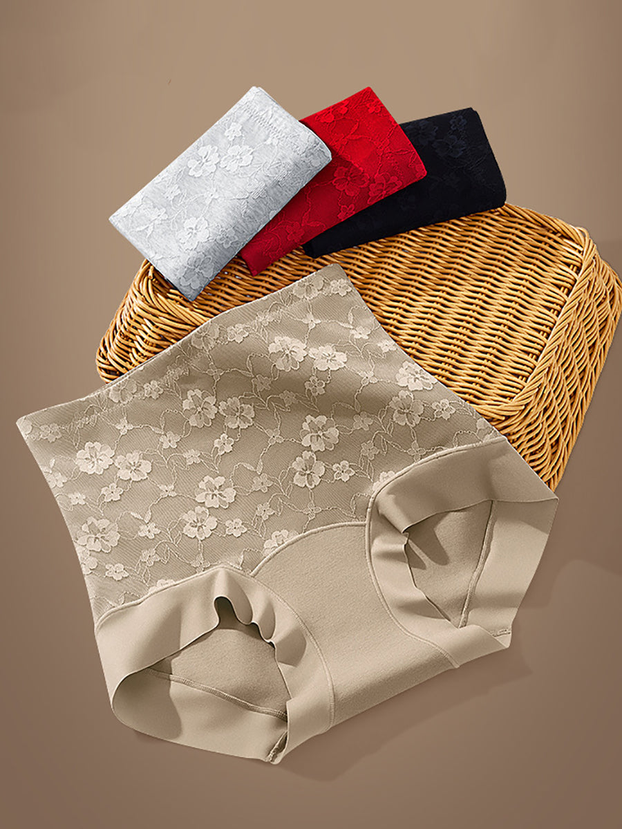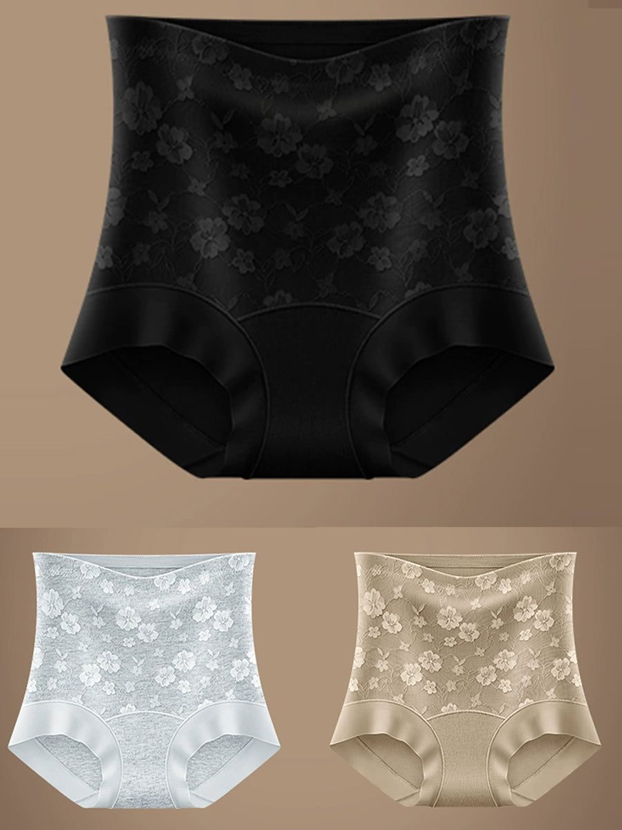 Conjunto de 3 peças de calcinha feminina de cintura alta com estampa floral artística.