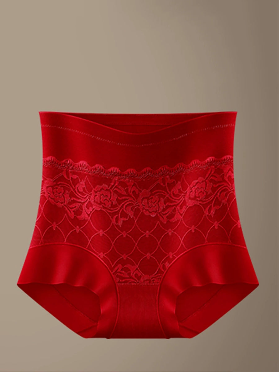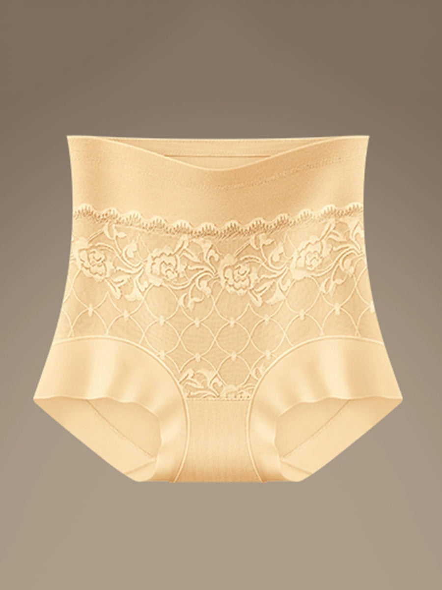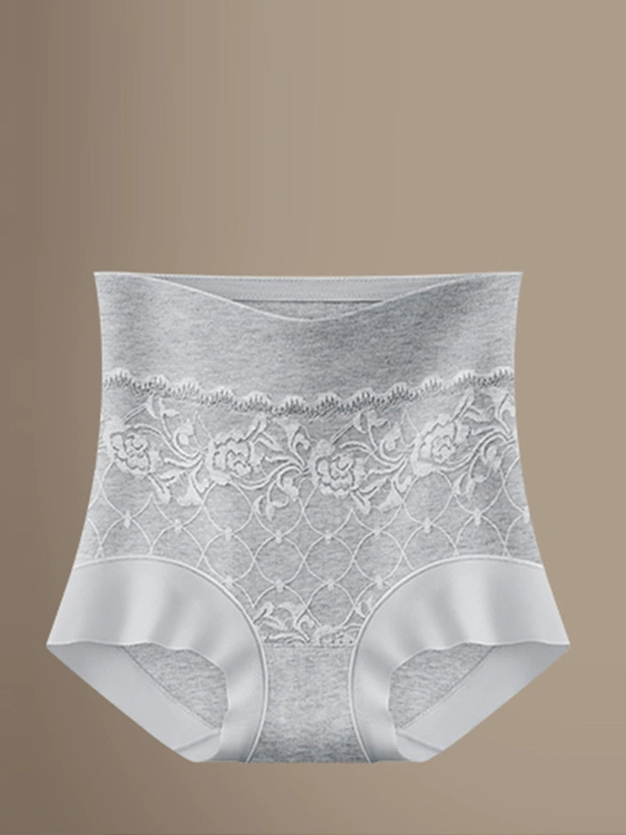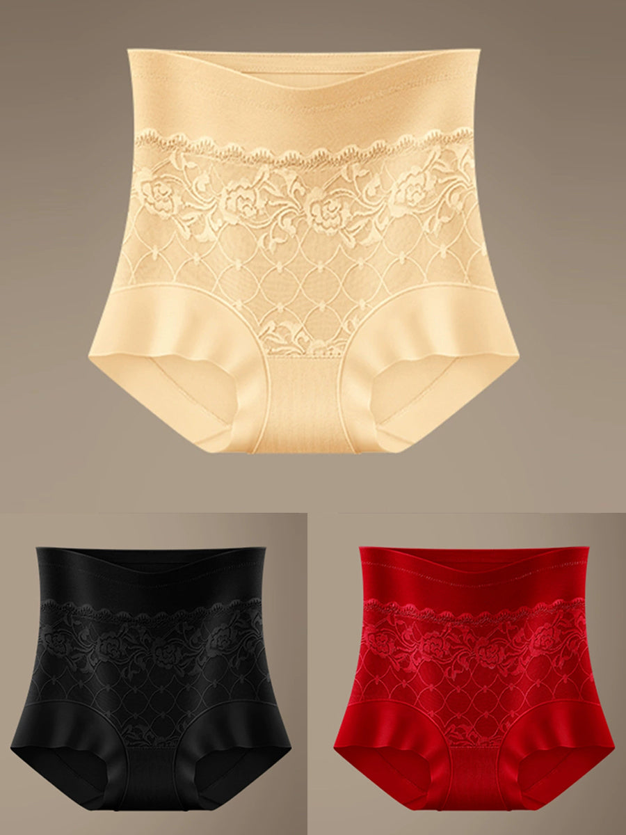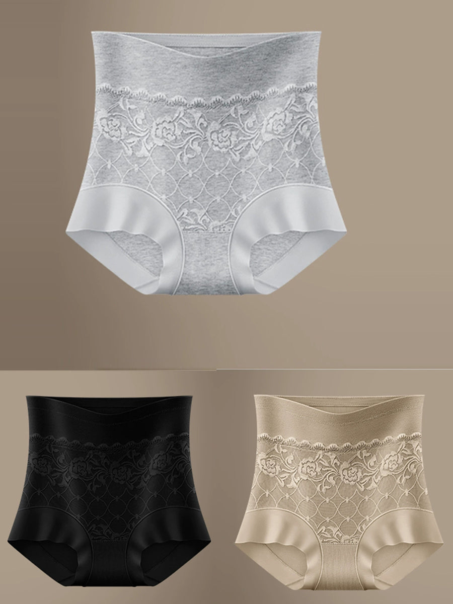 Conjunto de 3 peças de calcinha feminina de cintura alta com estampa floral artística.