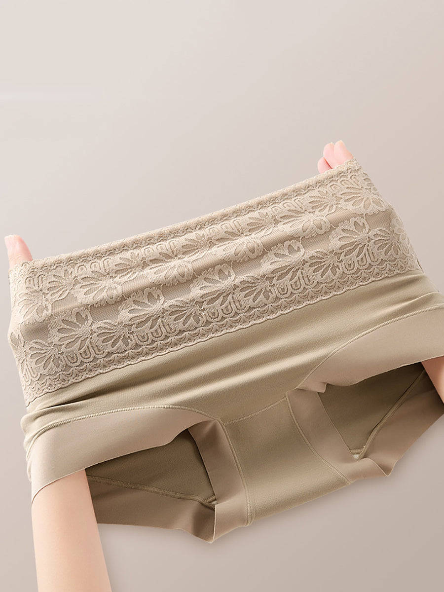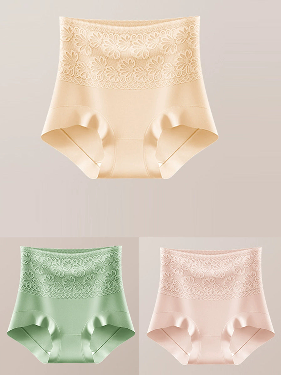 Conjunto de 3 peças de calcinha feminina de cintura alta com estampa floral artística.