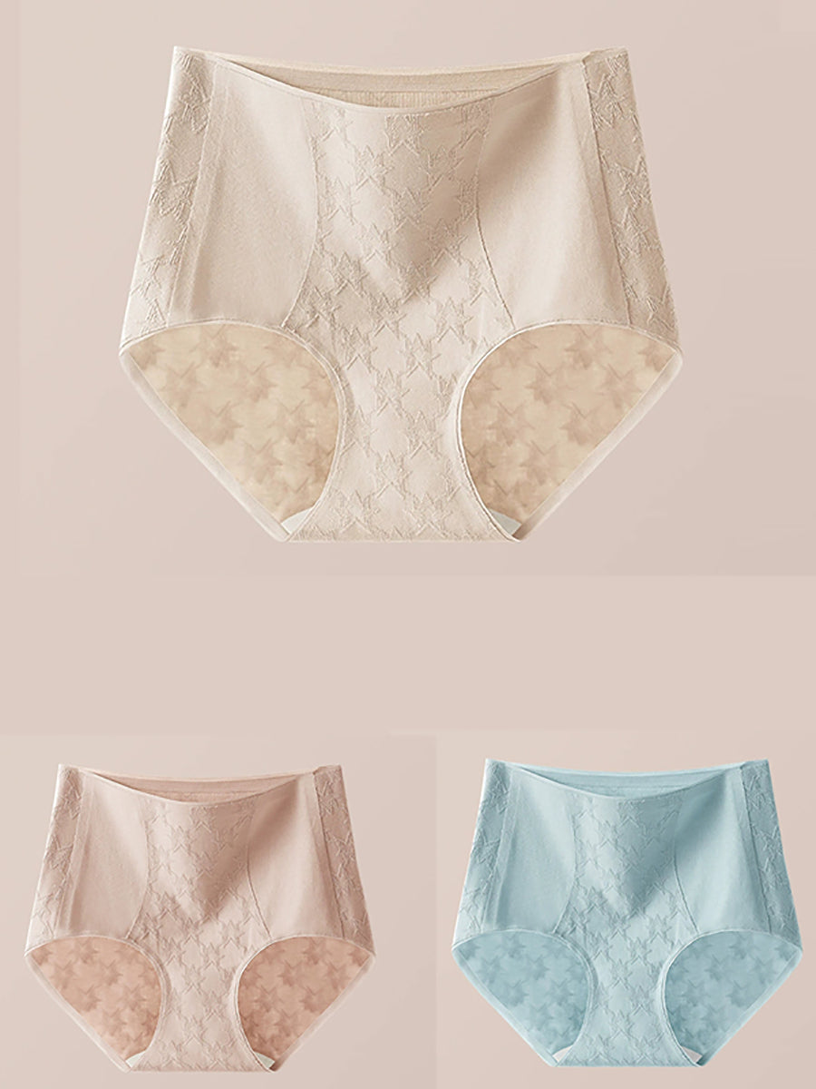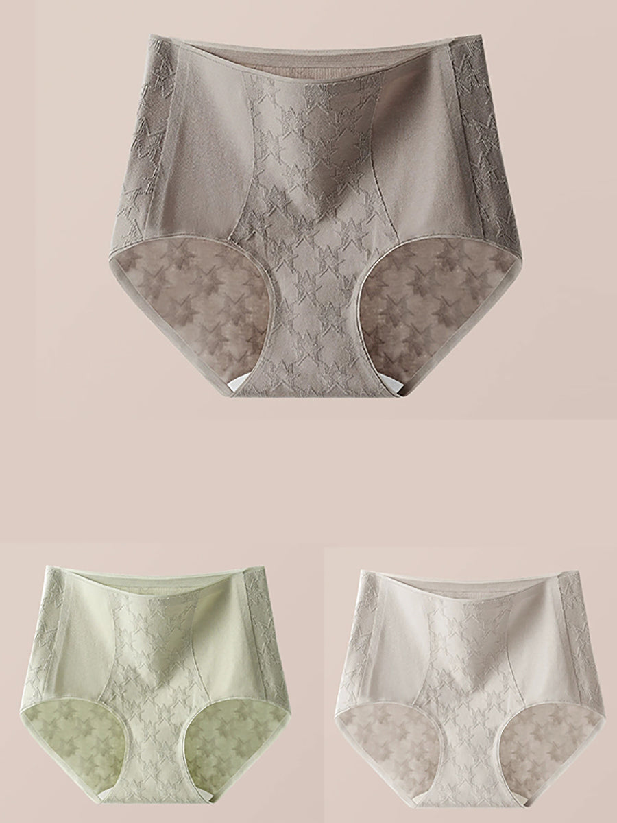 Conjunto de 3 peças de calcinha feminina de cintura alta com estampa jacquard artística