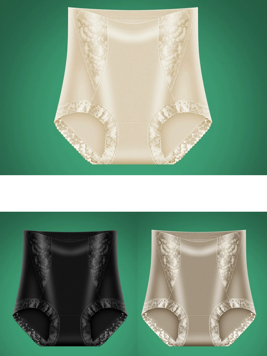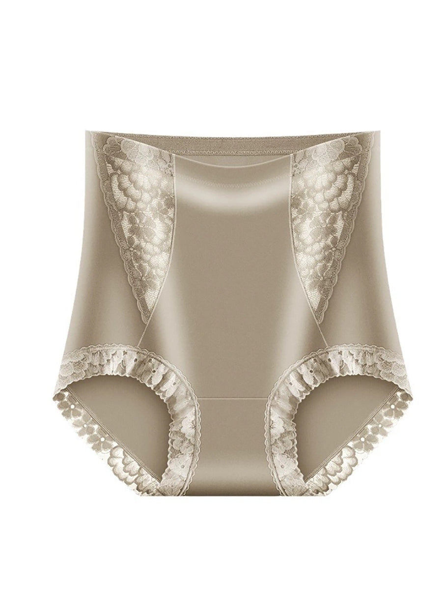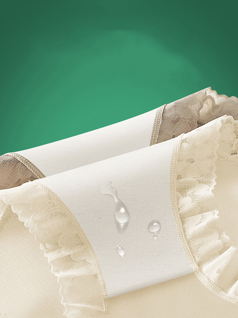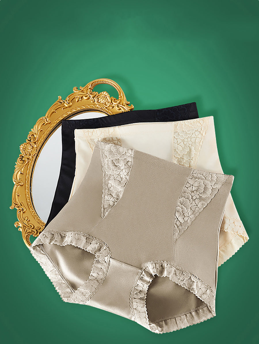 Conjunto de 3 peças de calcinha feminina de renda de cor lisa com cintura alta.
