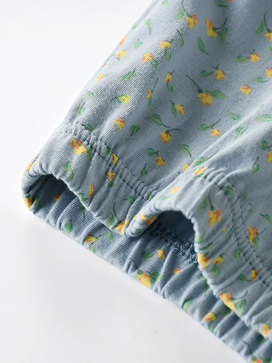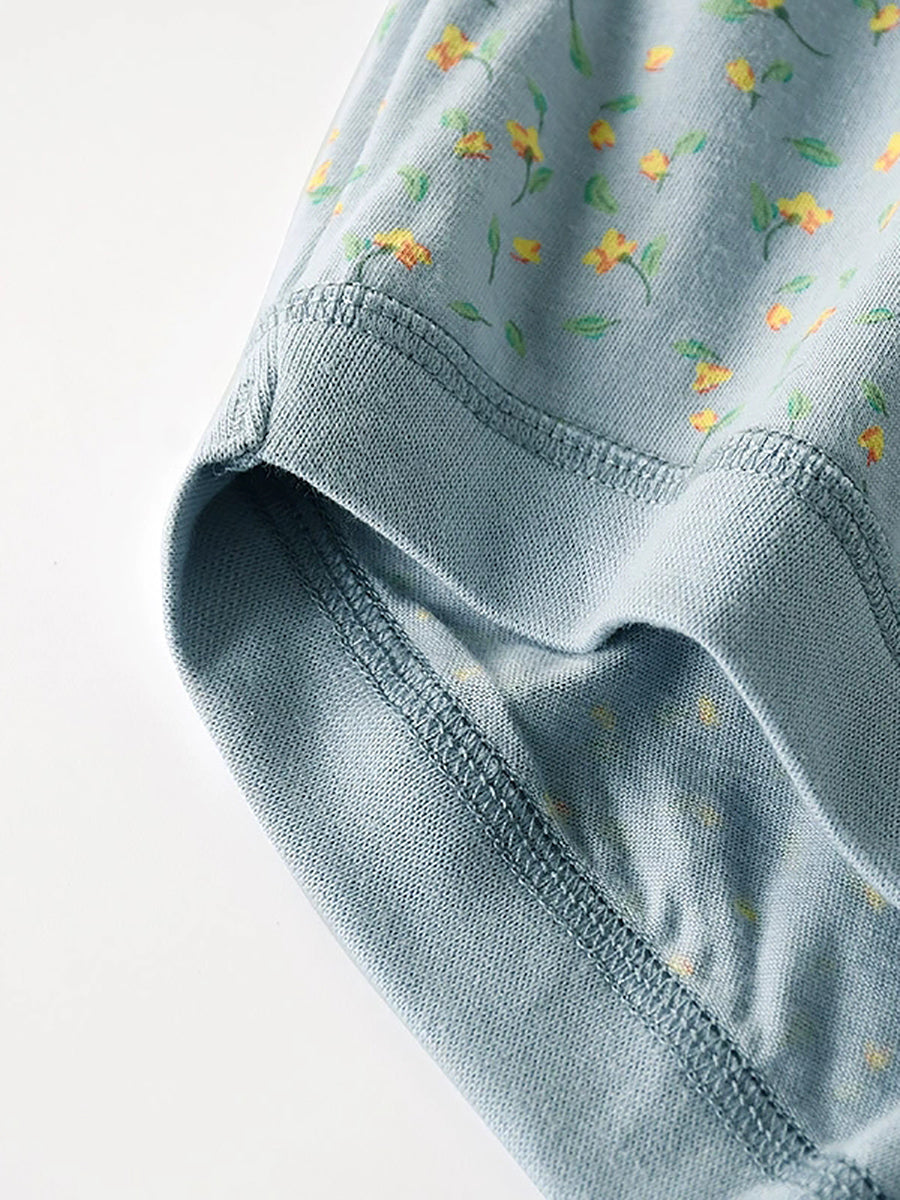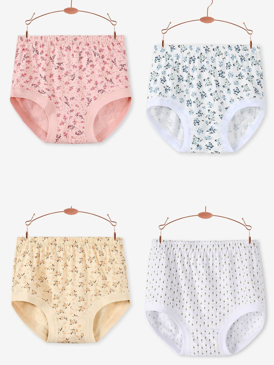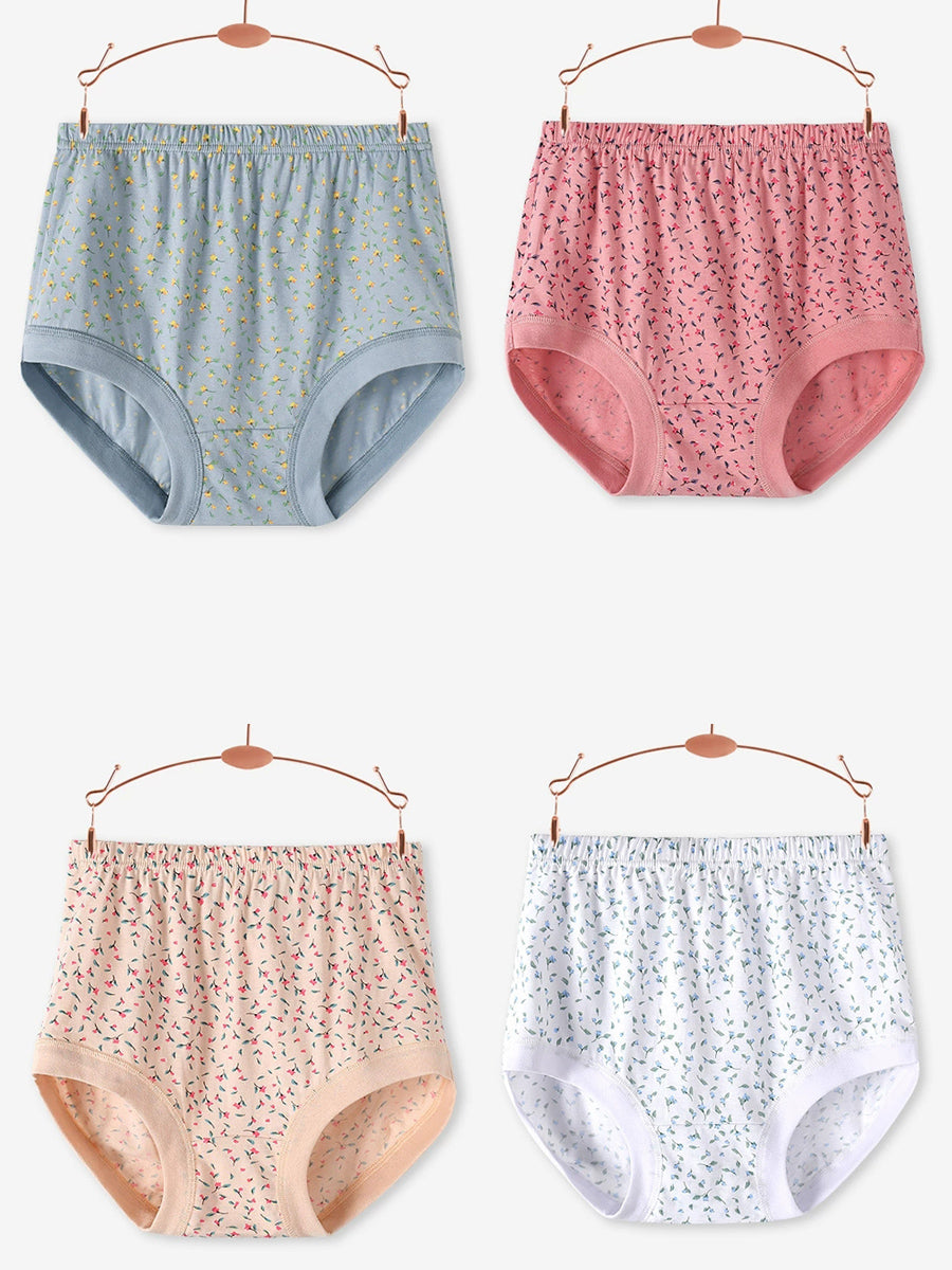 Conjunto de 4 peças de calcinhas femininas de cintura alta com estampa floral artística.
