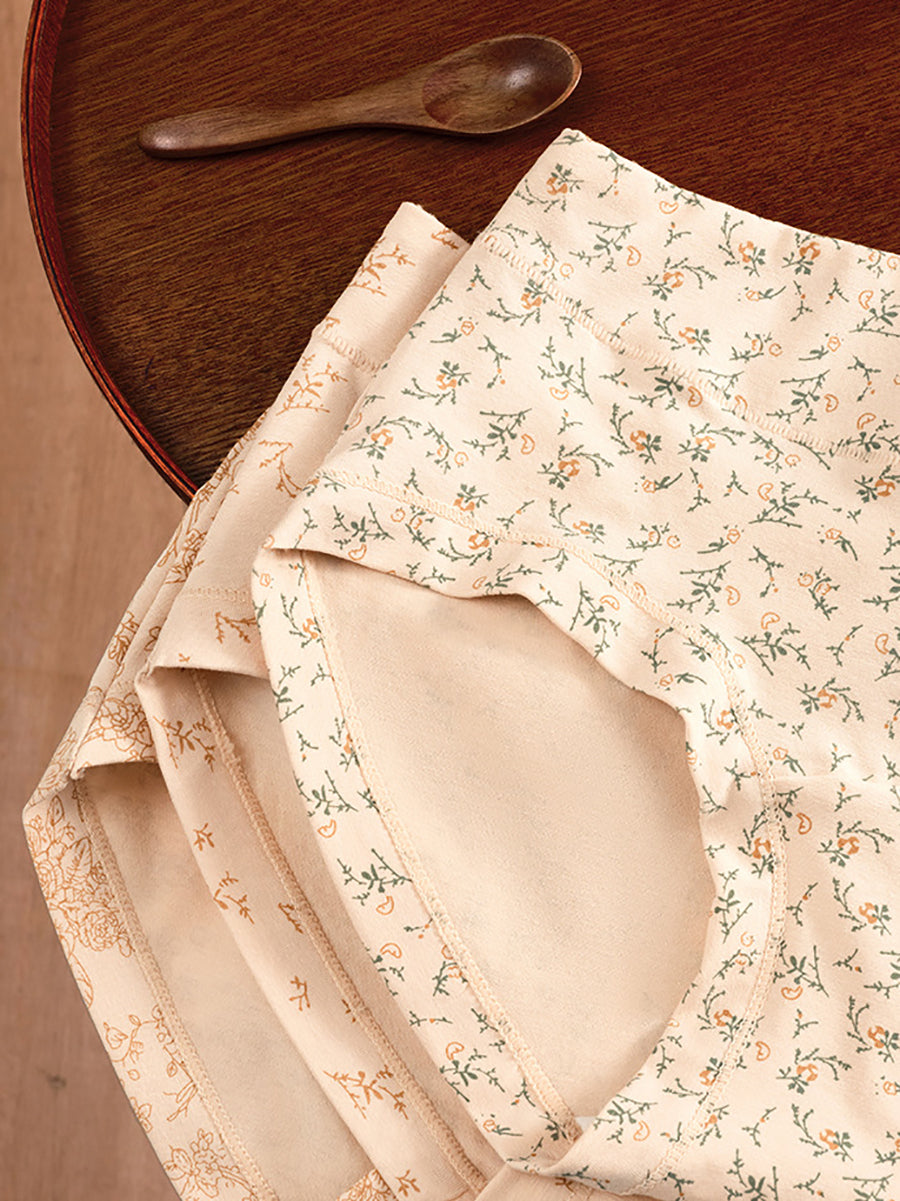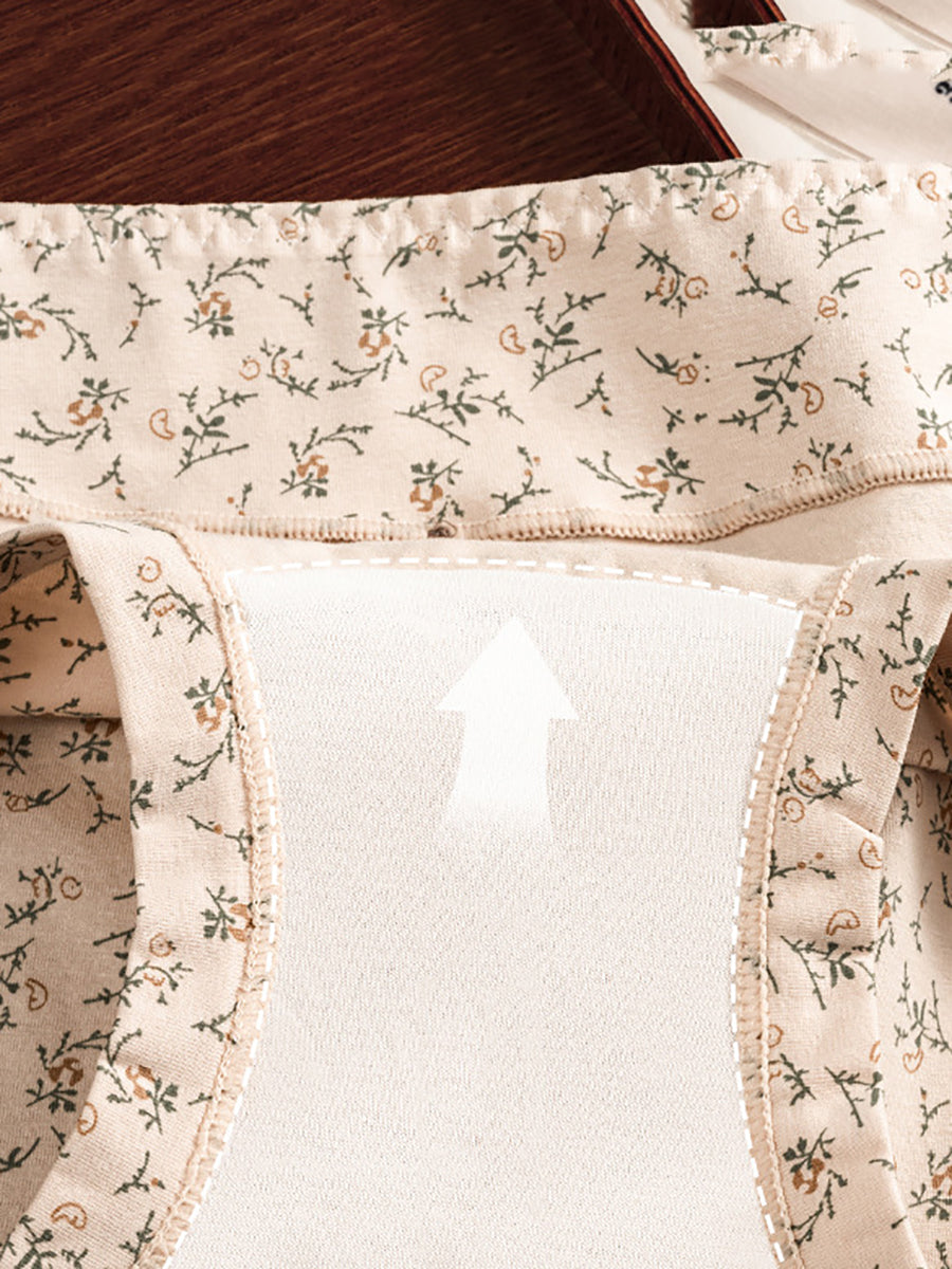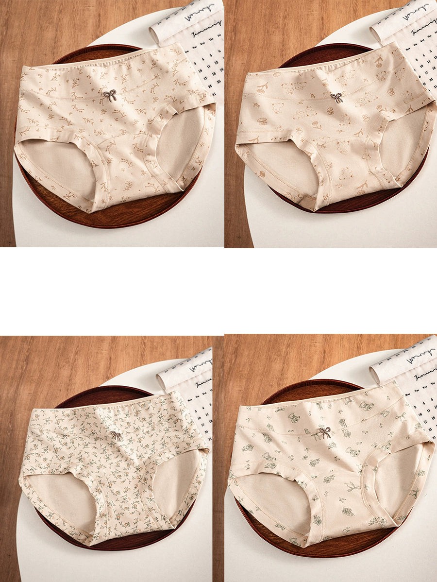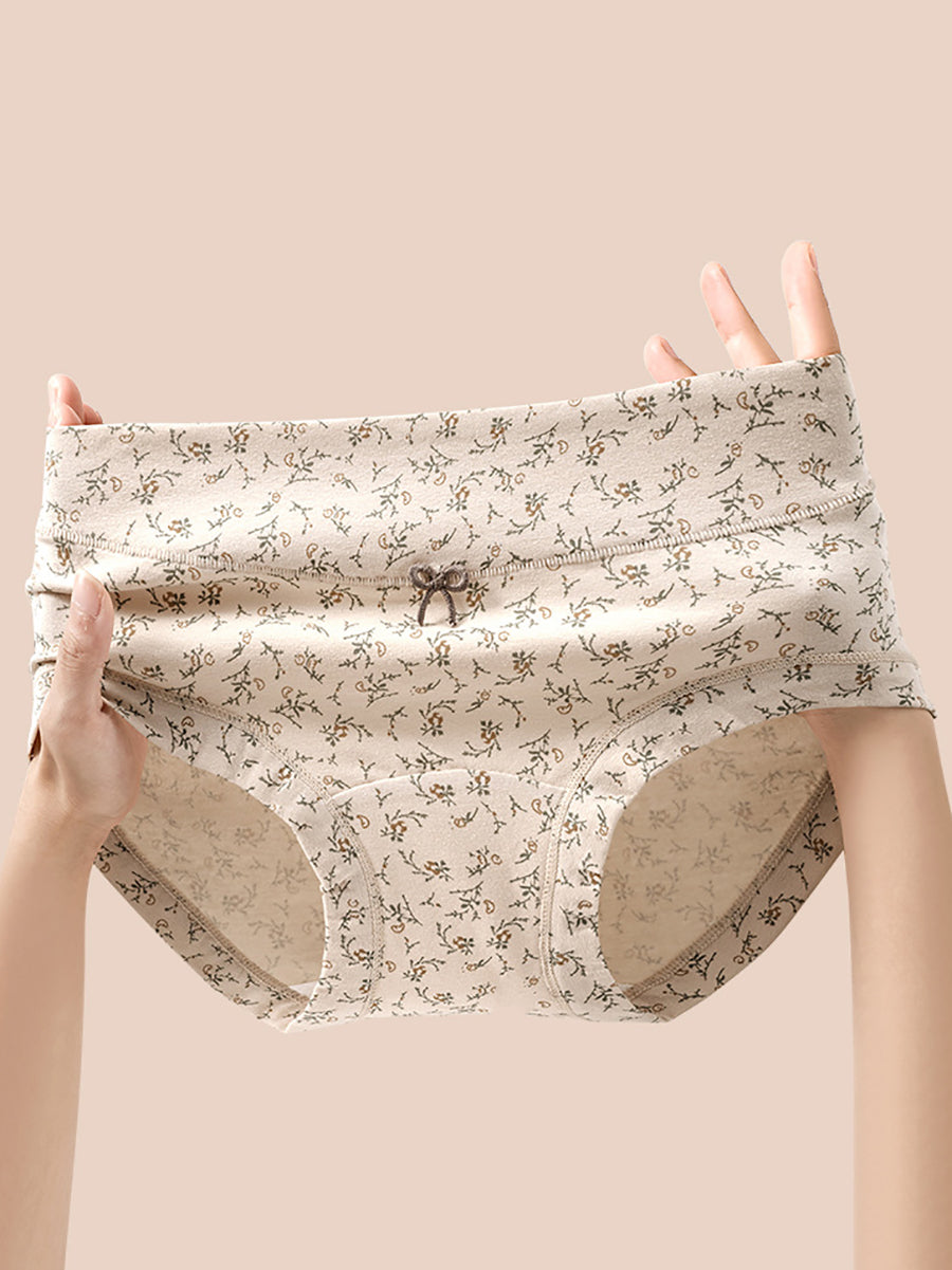 Conjunto de 4 peças de calcinhas femininas de cintura alta com estampa floral artística.
