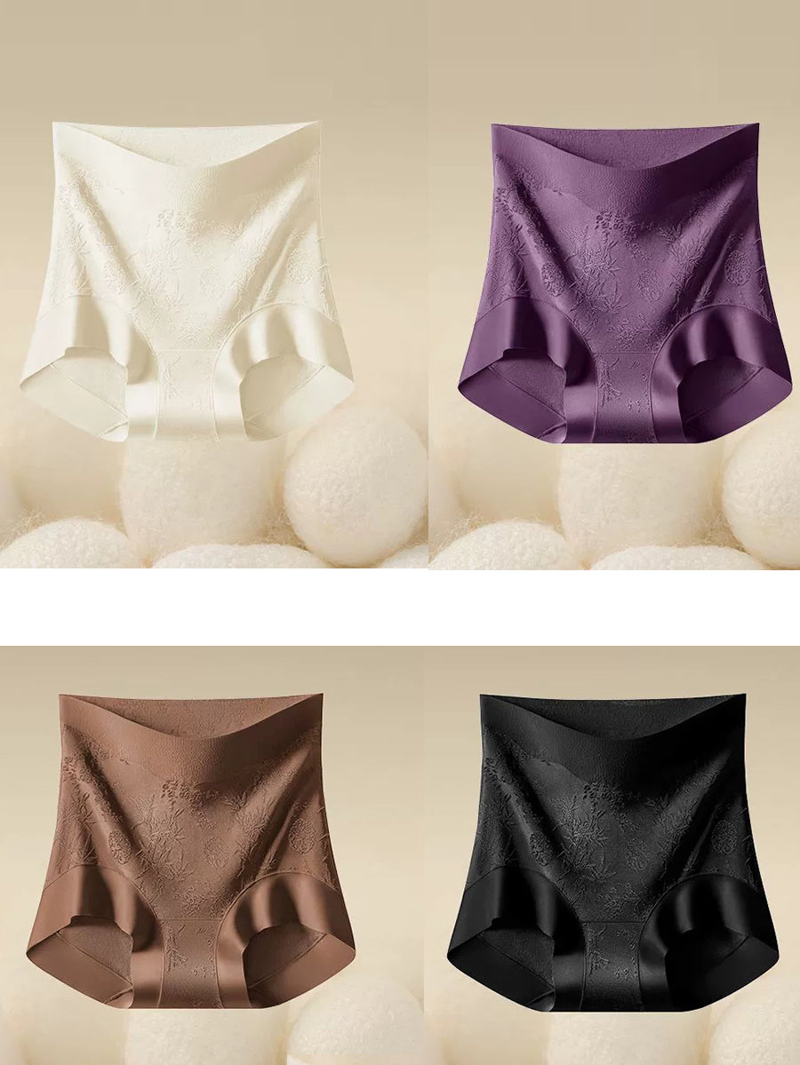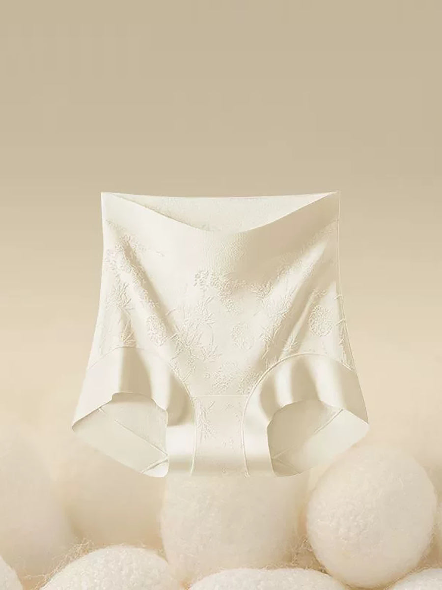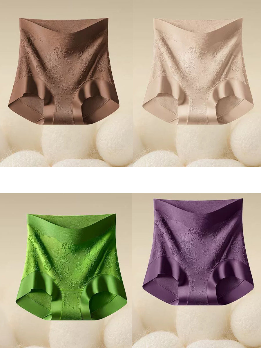 Conjunto de 4 peças de calcinha feminina de cintura alta com estampa floral jacquard.