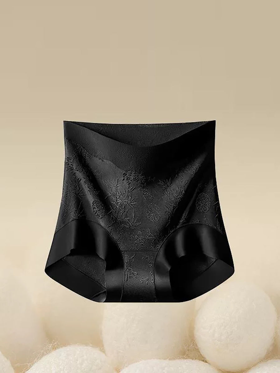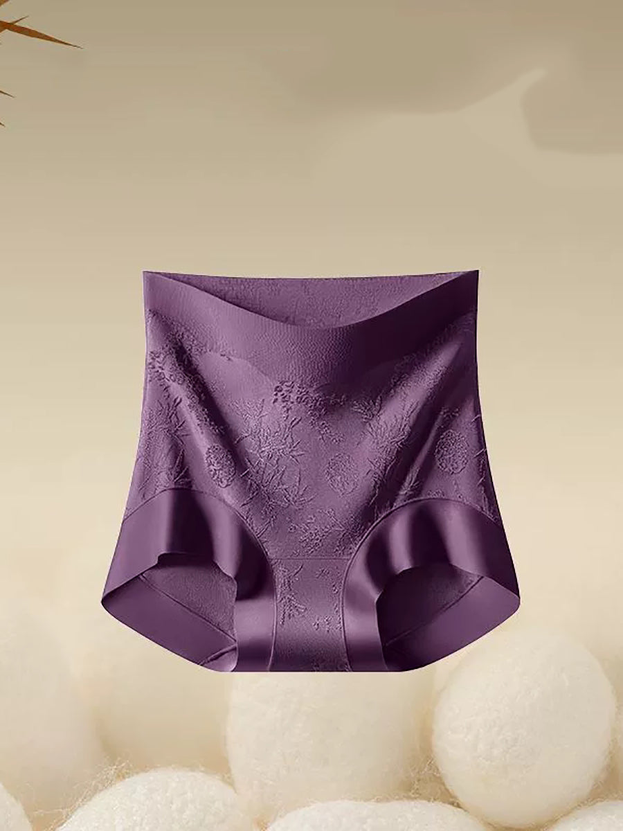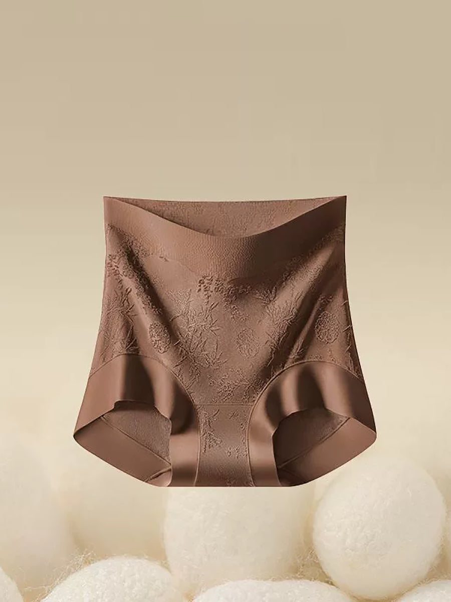 Conjunto de 4 peças de calcinha feminina de cintura alta com estampa floral jacquard.