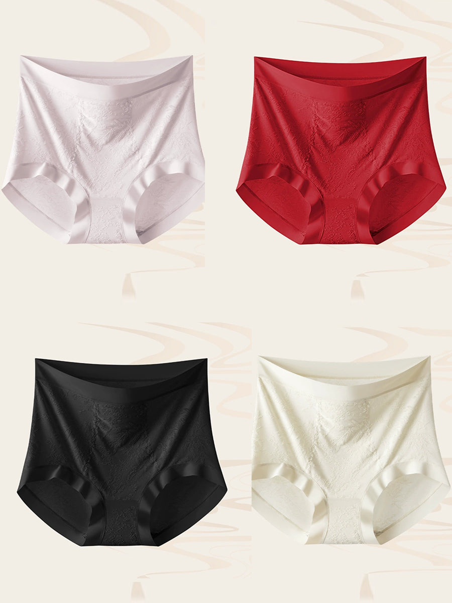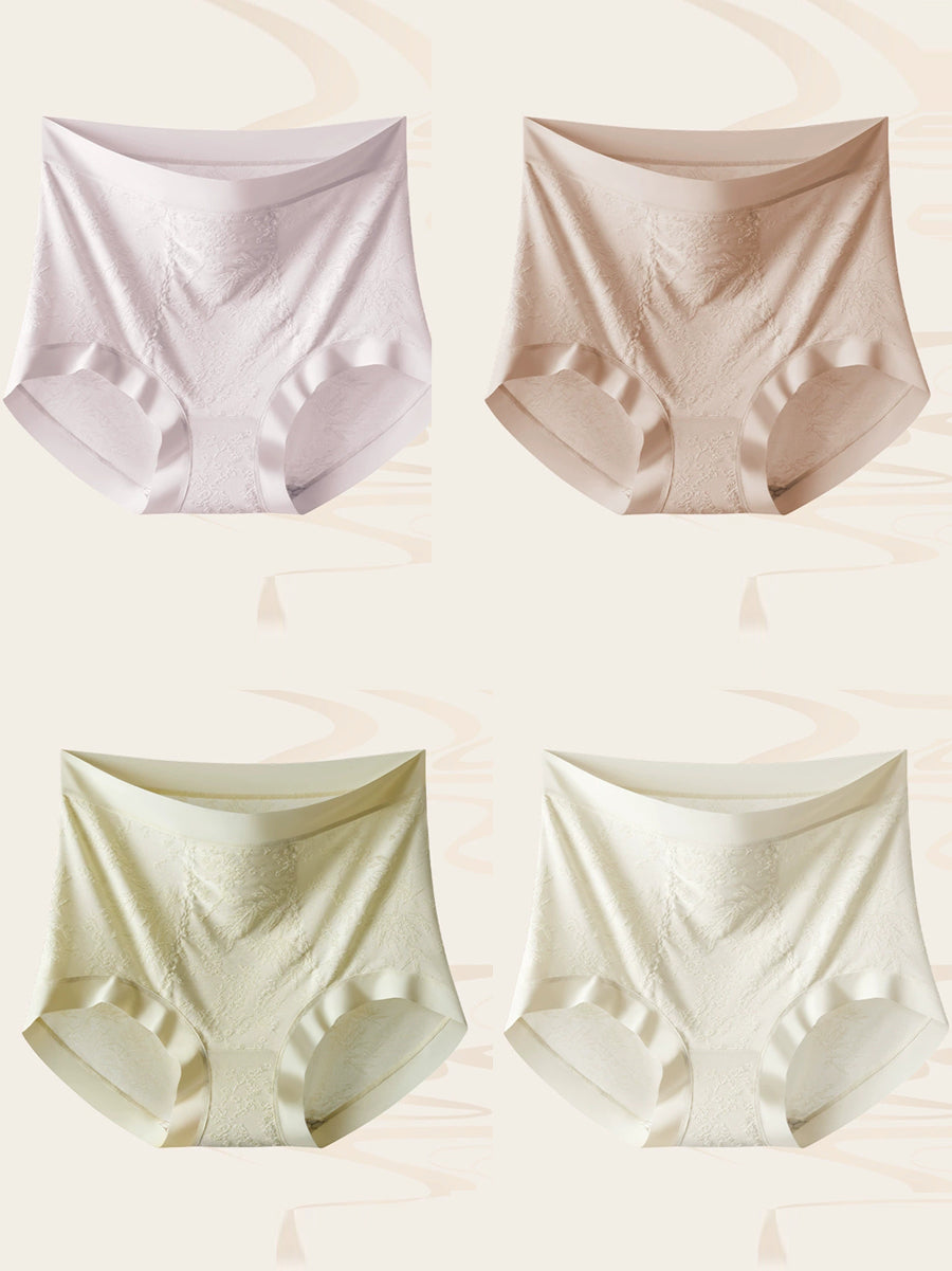 Conjunto de 4 peças de calcinha feminina de cintura alta com estampa jacquard artística.