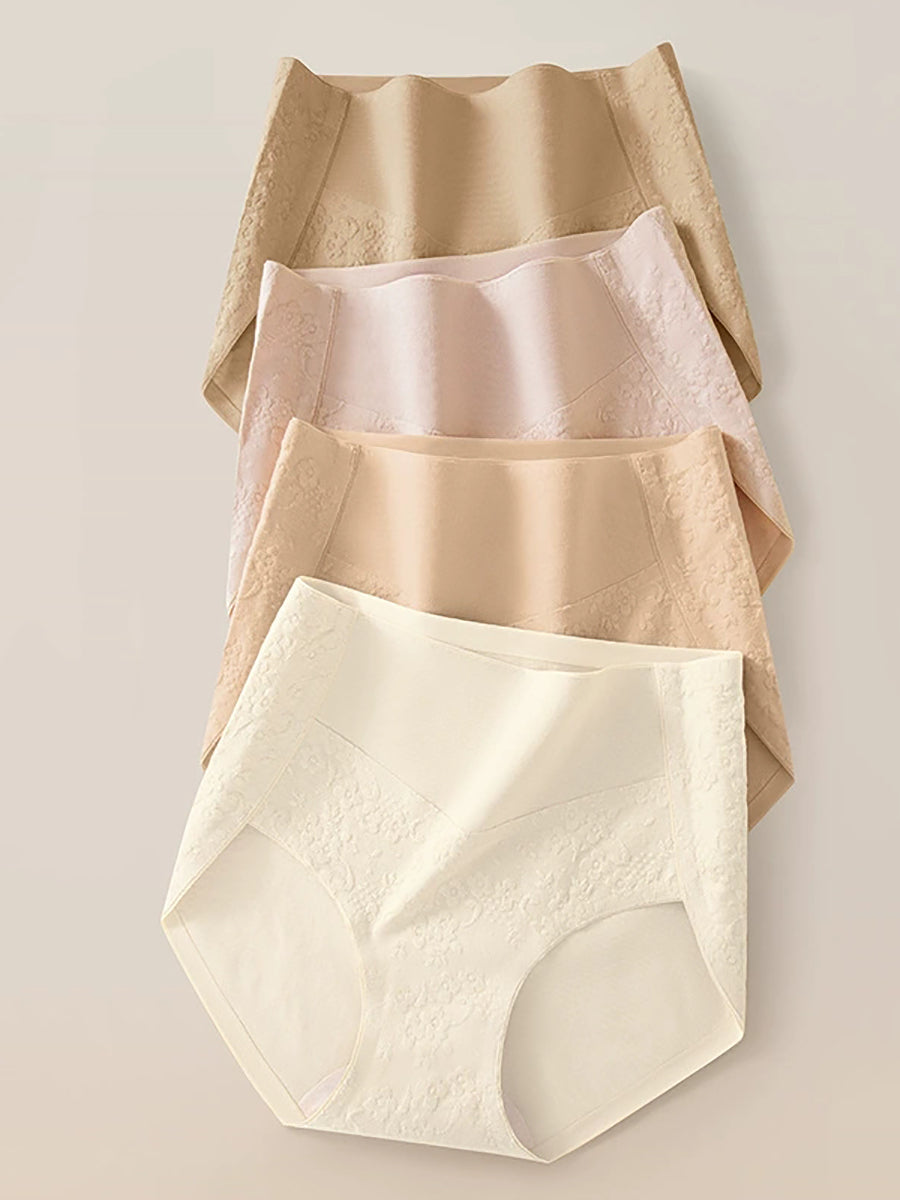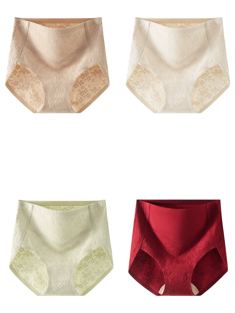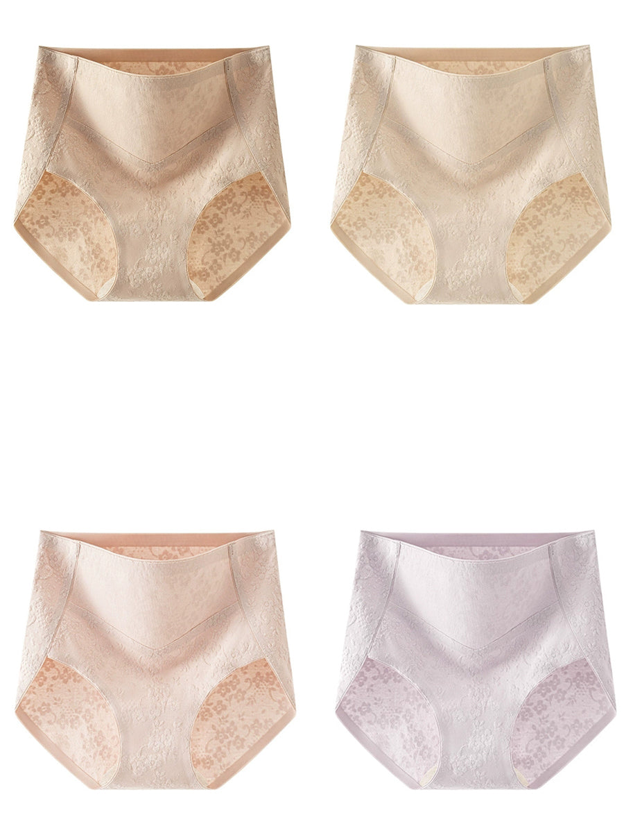 Conjunto de 4 peças de calcinha feminina de cintura alta com estampa jacquard artística.