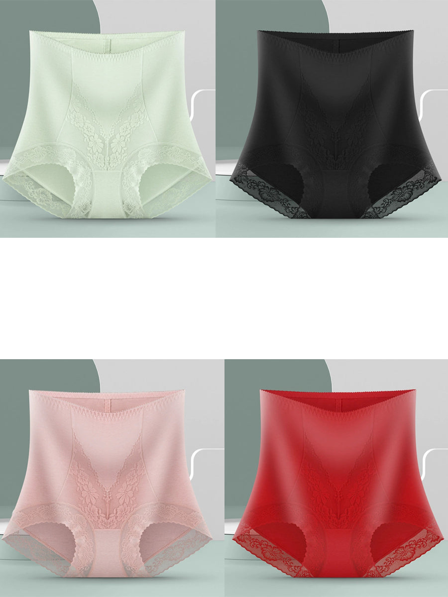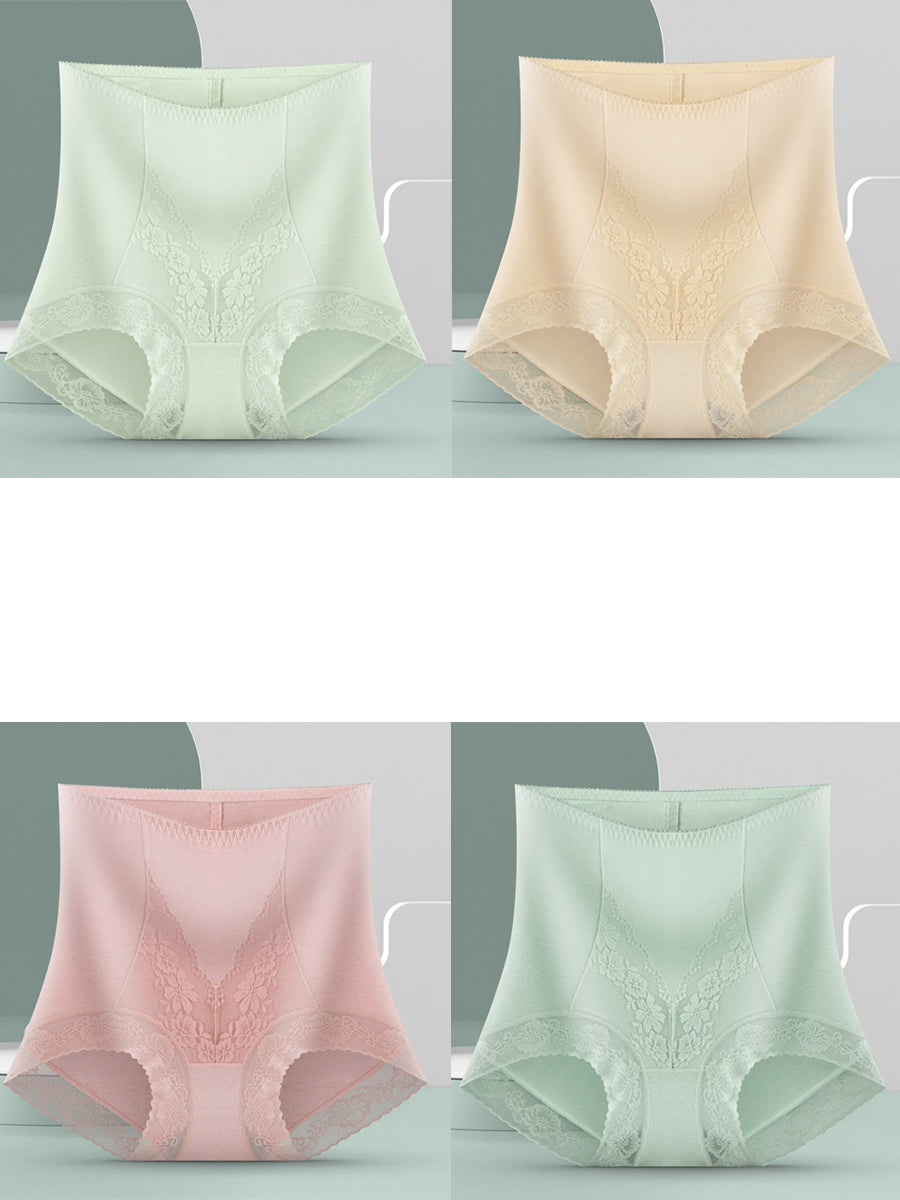 Conjunto de 4 peças de calcinha feminina de renda com cintura alta.