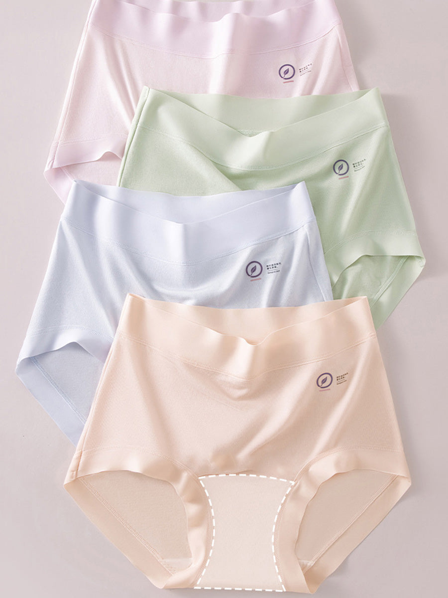 Conjunto de 4 peças de calcinhas femininas casuais de cintura alta em cor lisa.