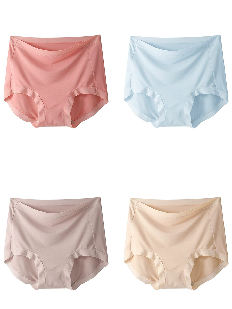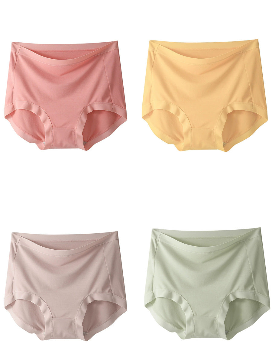 Conjunto de 4 peças de calcinhas femininas casuais de cintura alta em cor lisa.