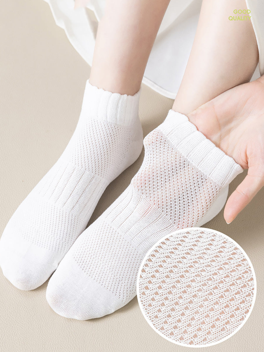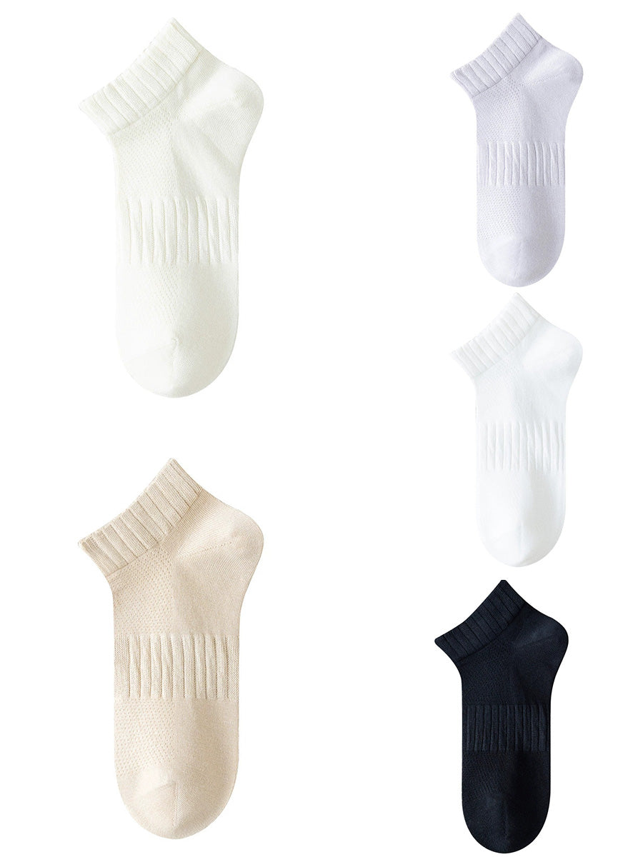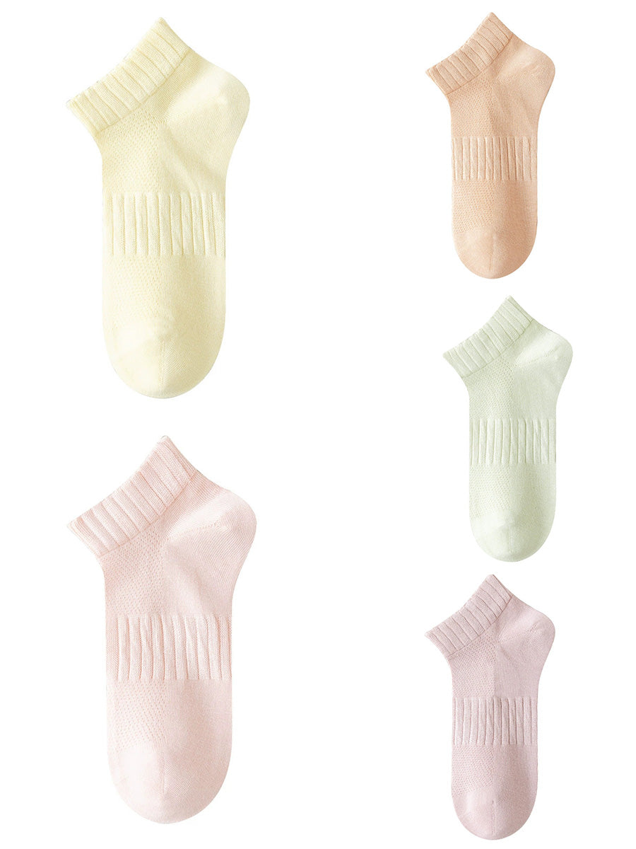5 pares de meias curtas femininas de cor lisa para o verão