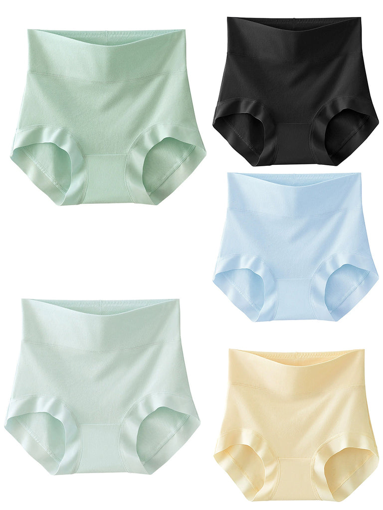 5 peças de roupa íntima feminina de algodão de cor pura e cintura alta