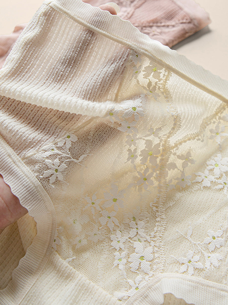 5 peças de roupa íntima feminina de cintura alta e cor pura de renda