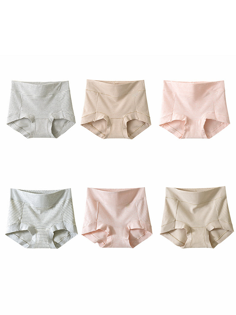 6 peças de roupa íntima feminina casual listrada de algodão com cintura alta