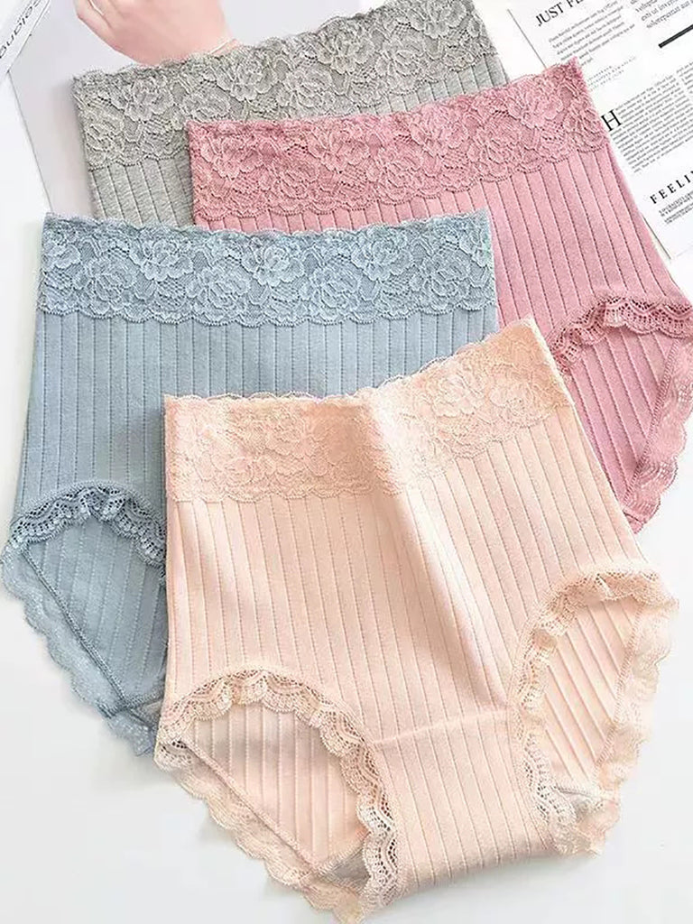 6 peças de roupa íntima feminina de renda de cintura alta e cor pura