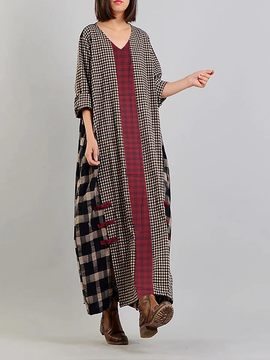 Vestido Plus Size de linho xadrez retrô de algodão e cores diferentes