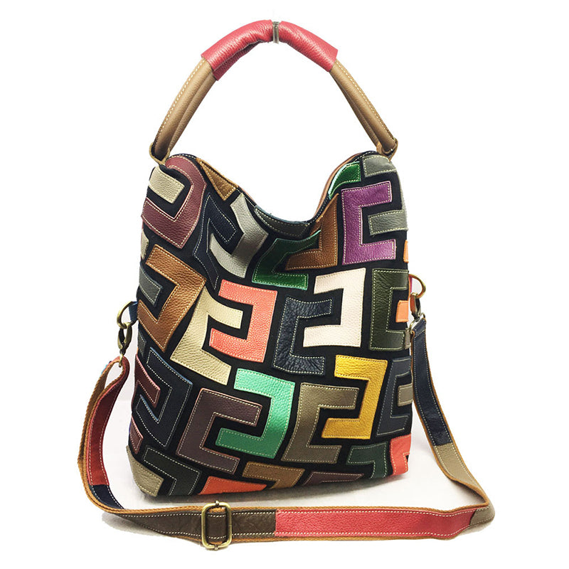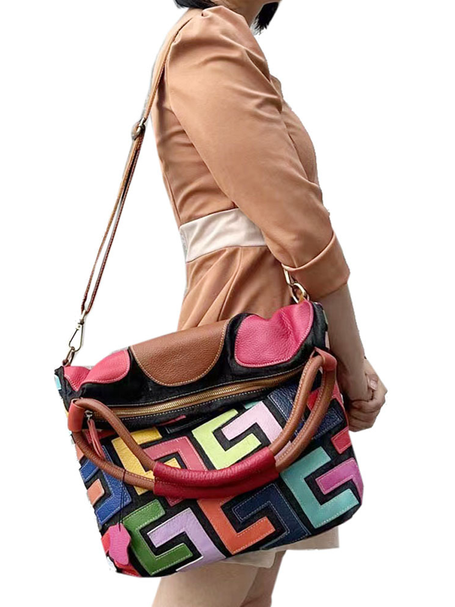 Bolsa feminina de couro colorblock