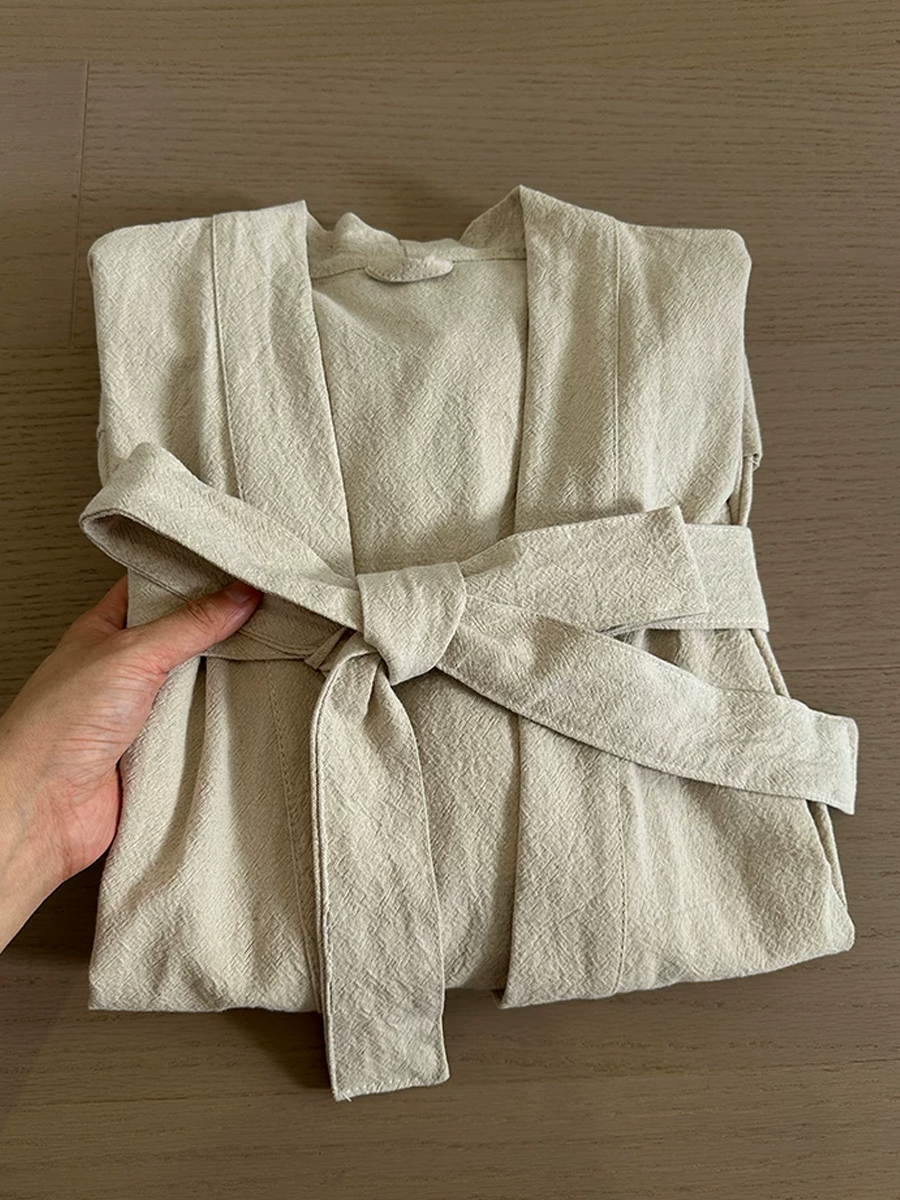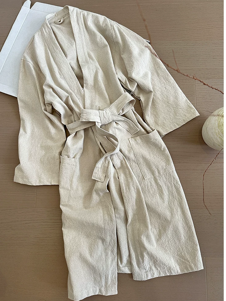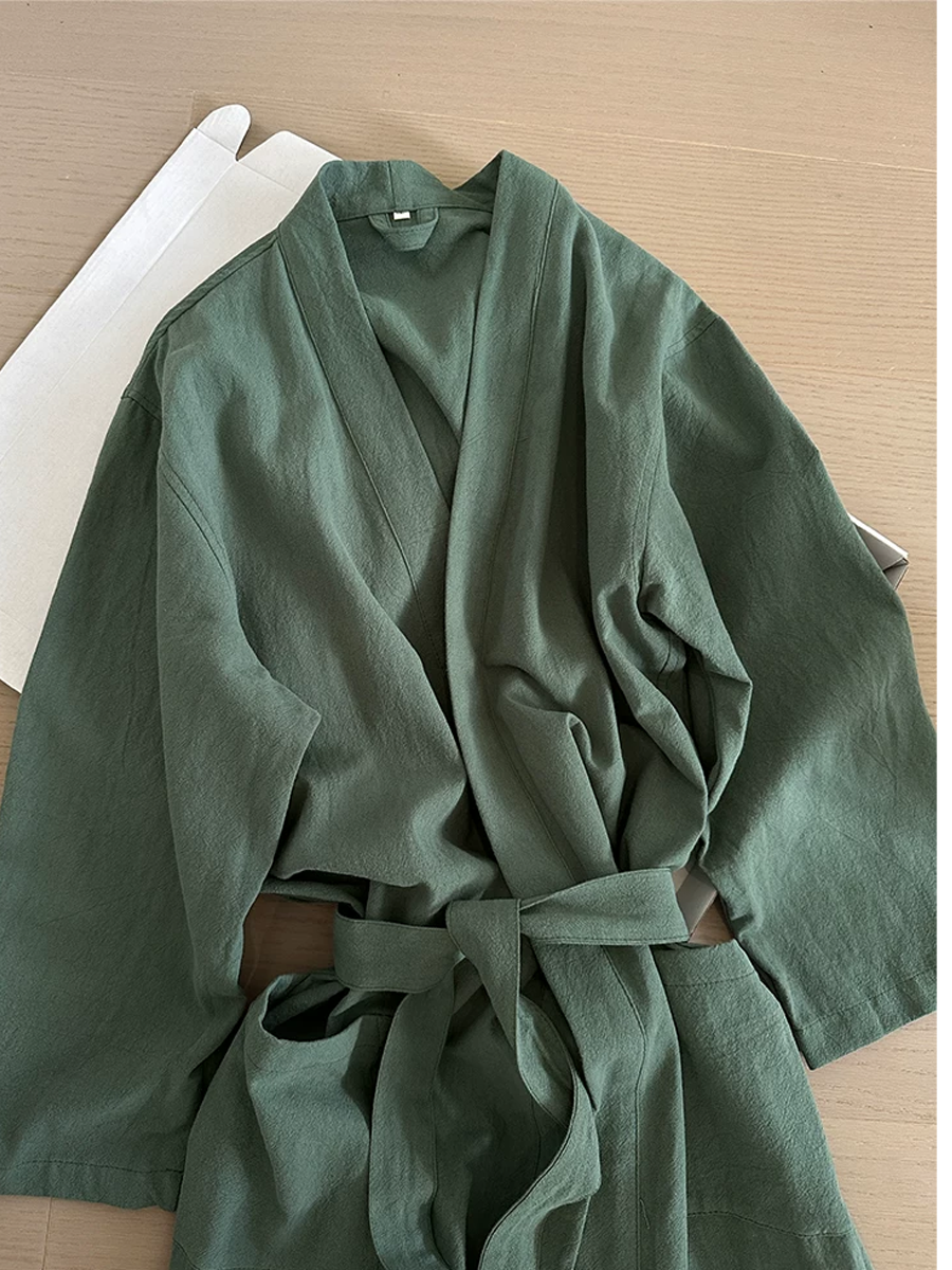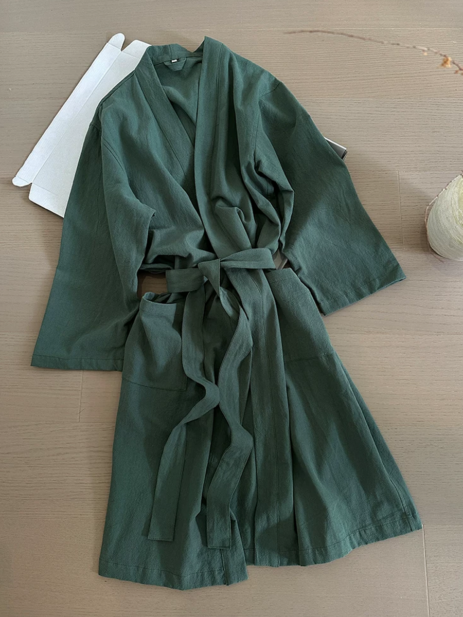 Roupão de banho unissex de algodão puro com modelagem solta.