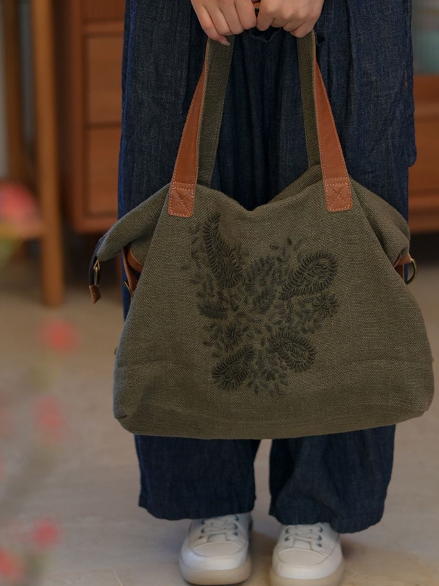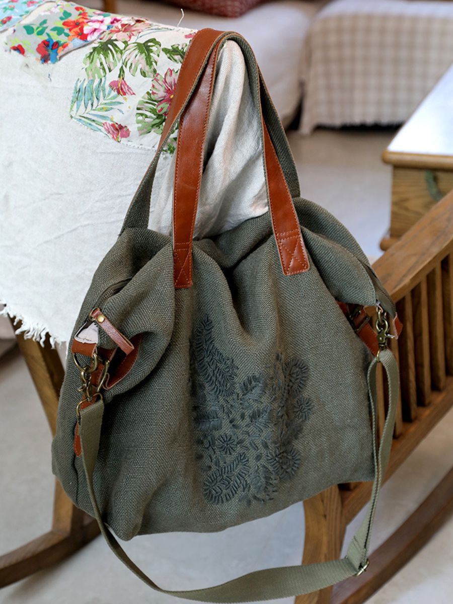 03022 Bolsa de Ombro Vintage Bordada em Algodão e Linho