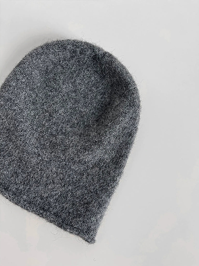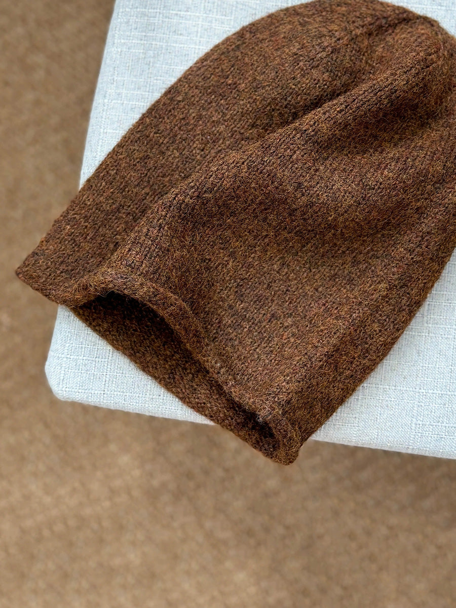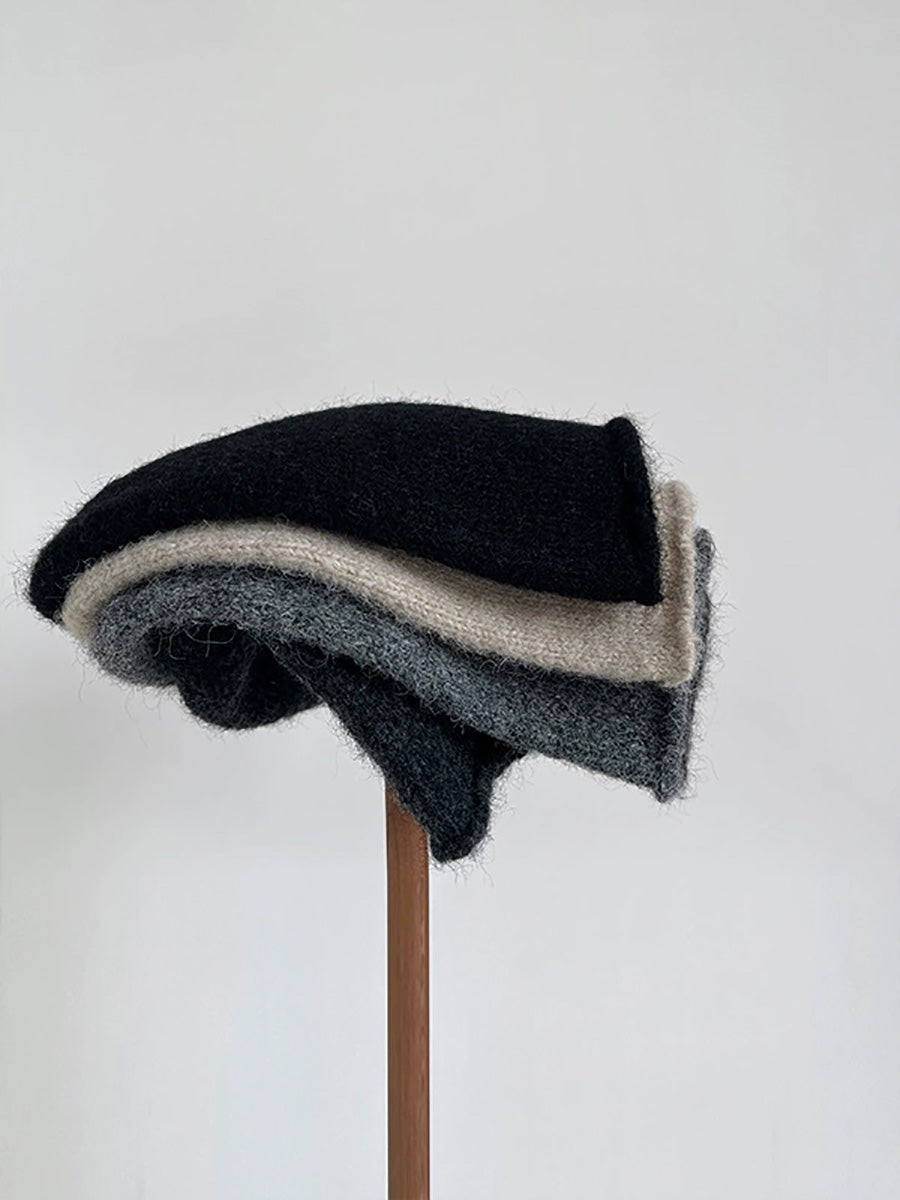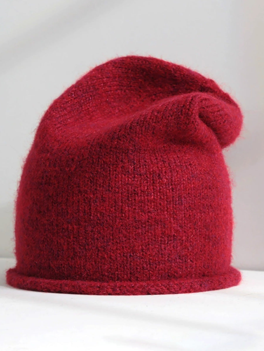 Gorro de tricô quente e artístico de cor pura para o inverno