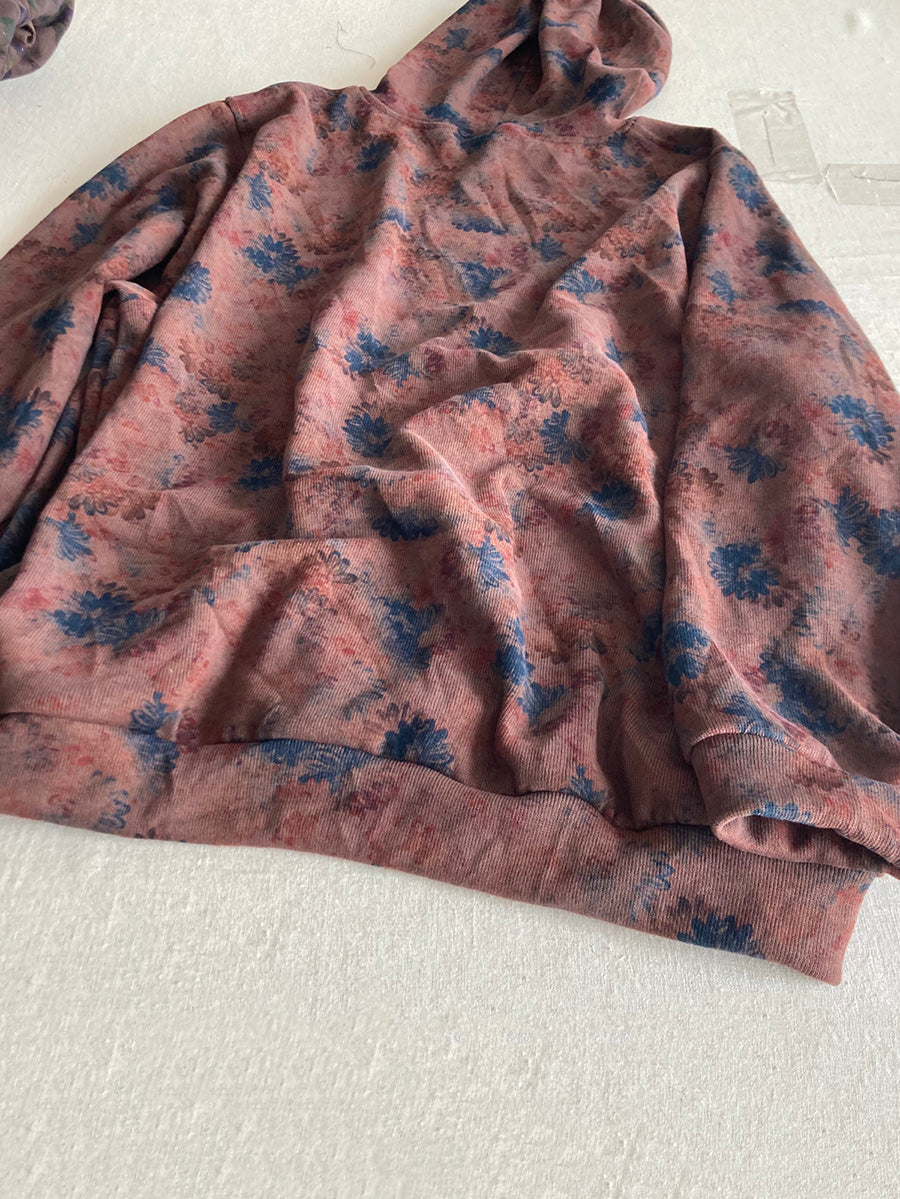 Blusa feminina com capuz e estampa floral outonal em algodão.