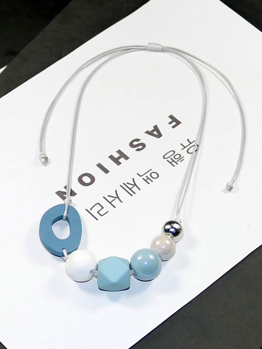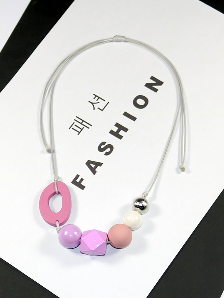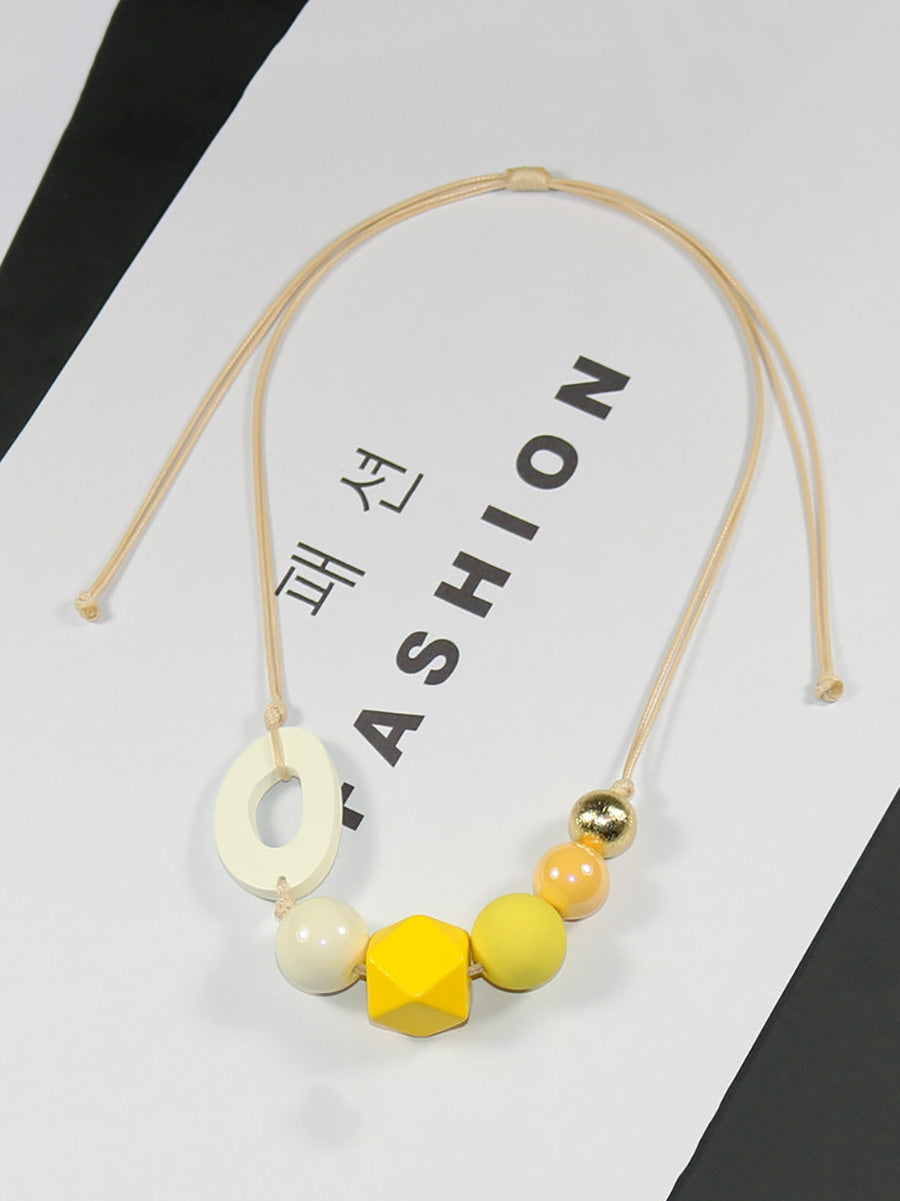 Colar feminino com trama de cobre acrílico e madeira geométrica Artsy