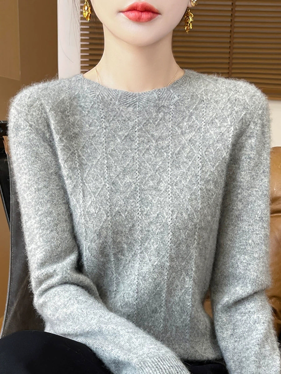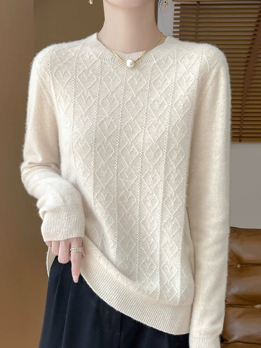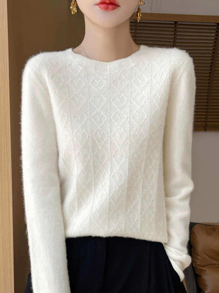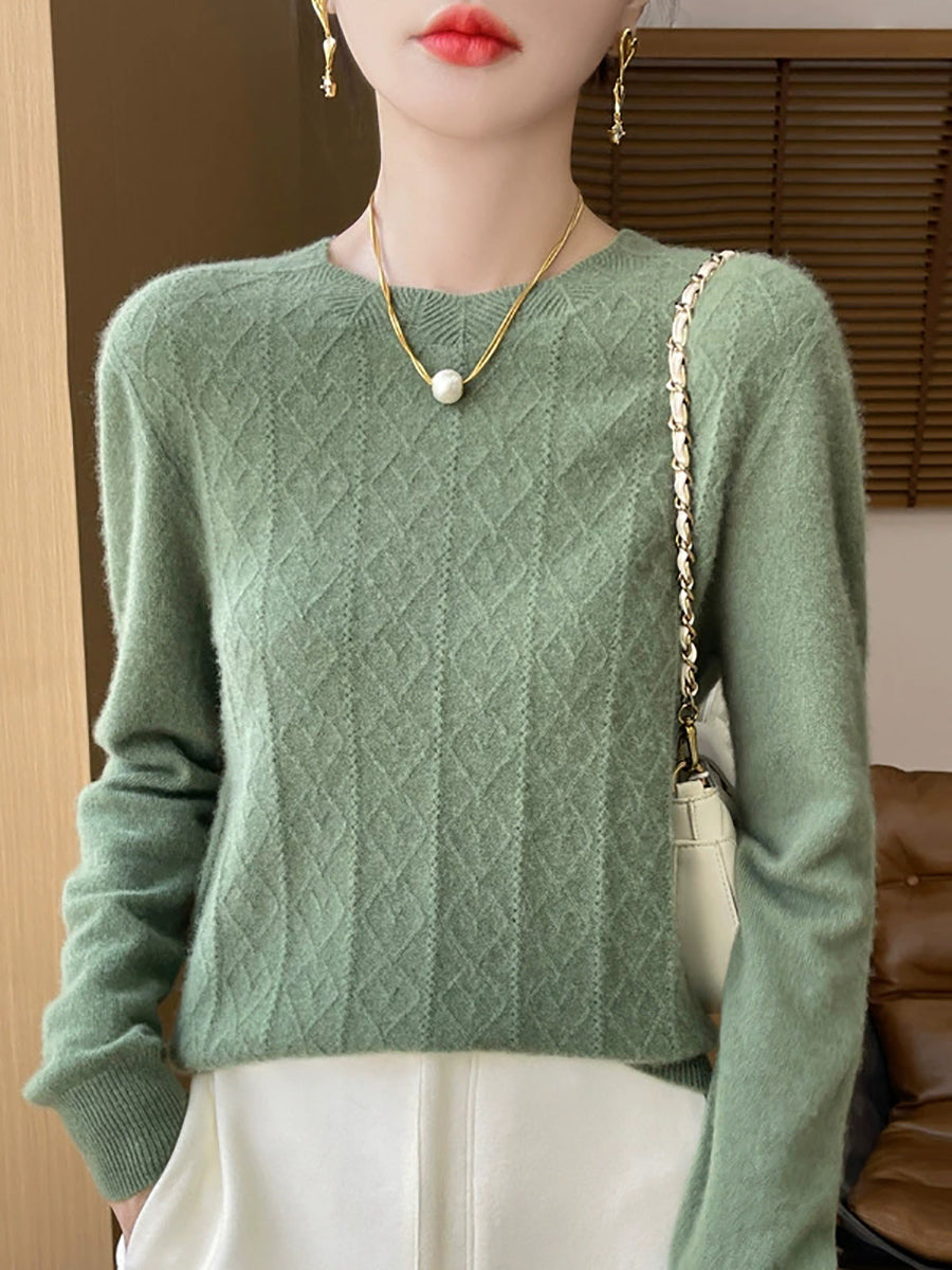 Suéter feminino Artsy de cor pura com gola redonda e tranças.