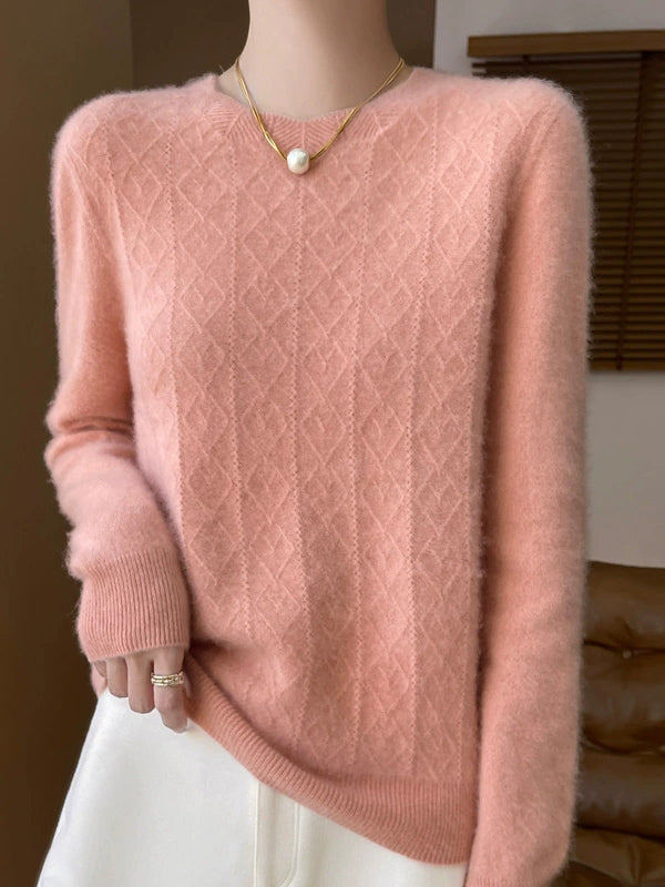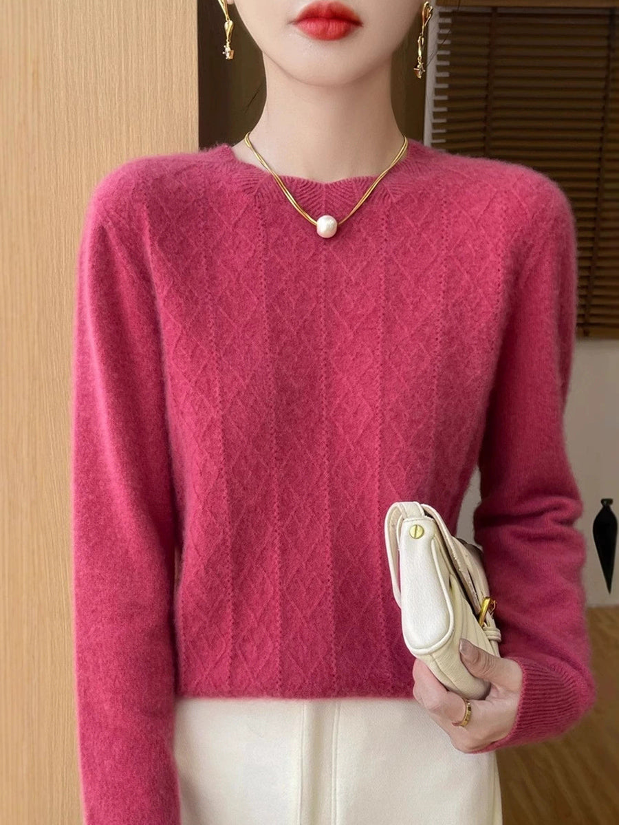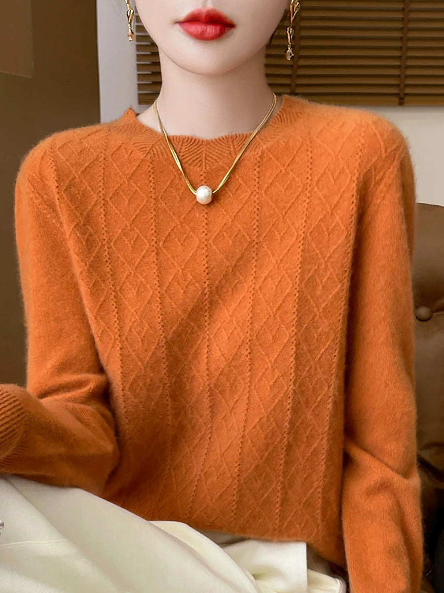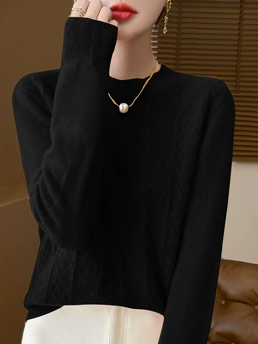 Suéter feminino Artsy de cor pura com gola redonda e tranças.