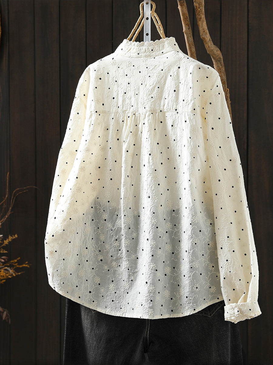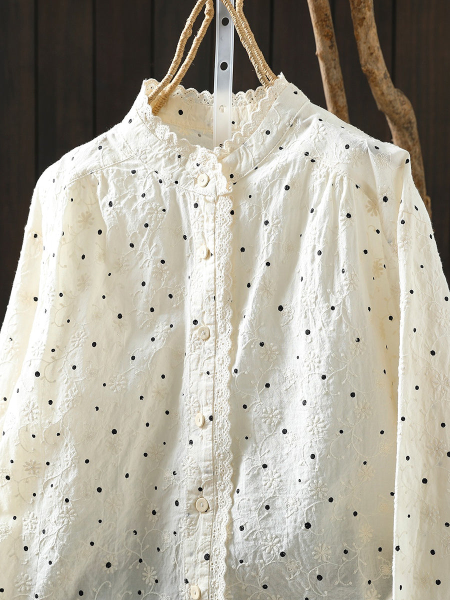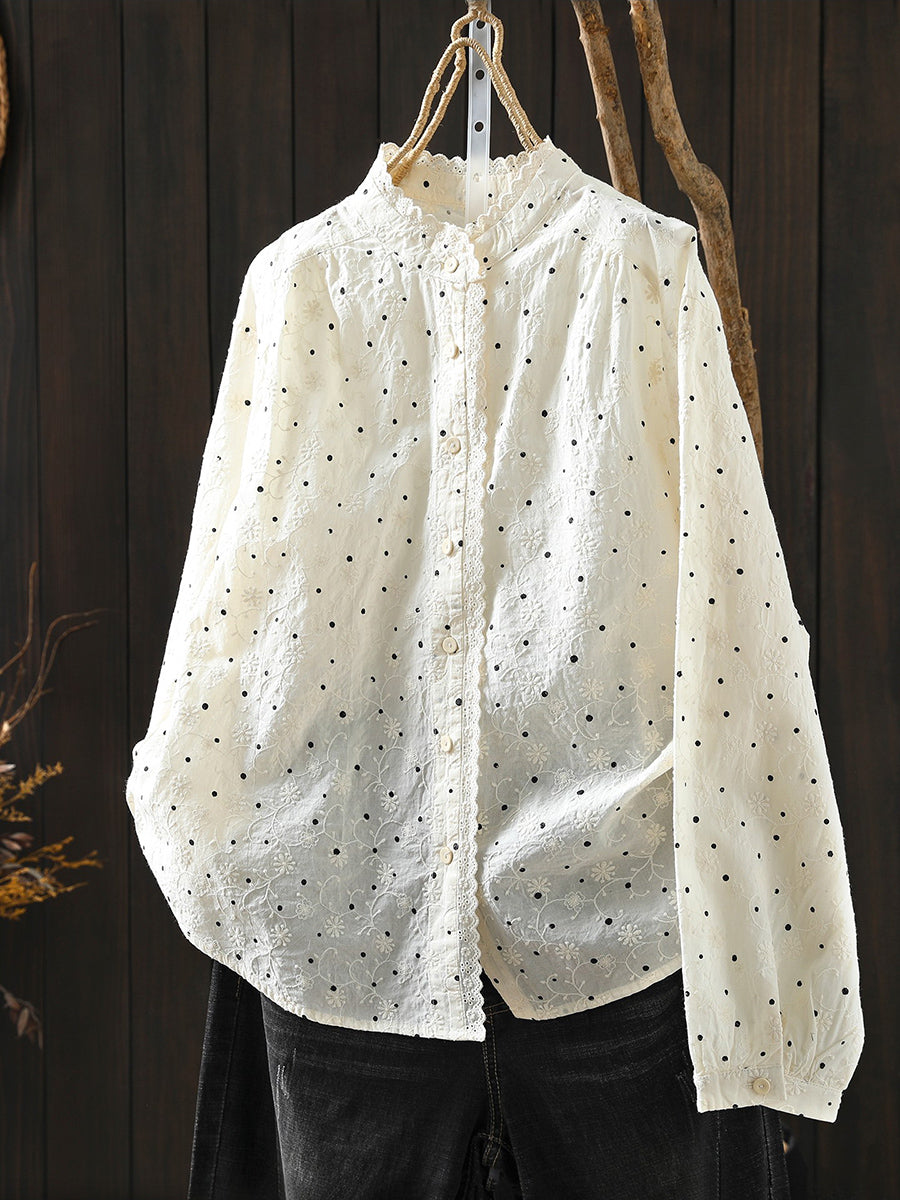 Blusa feminina Artsy Spring Dot 100% algodão com gola alta