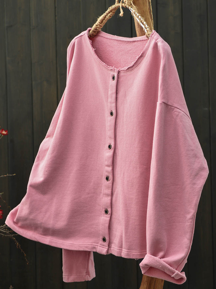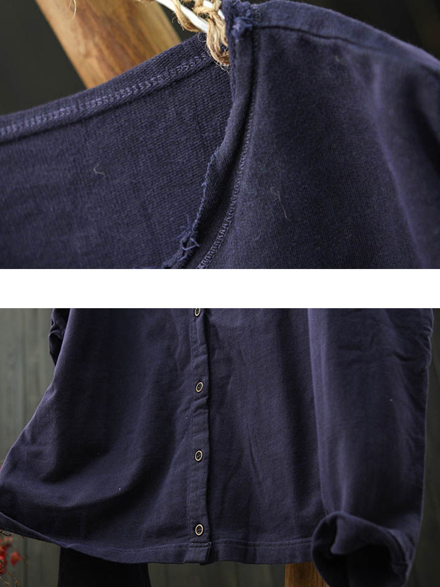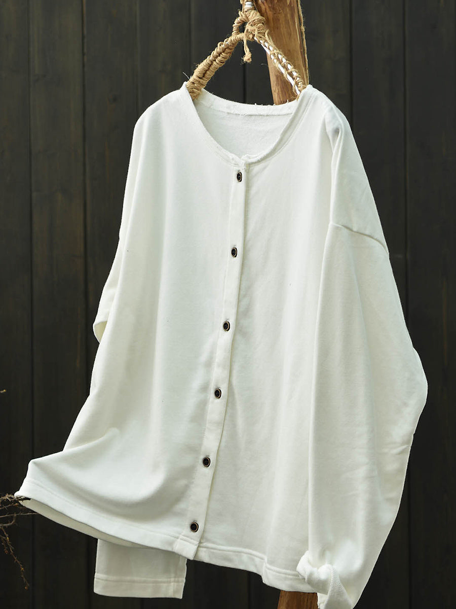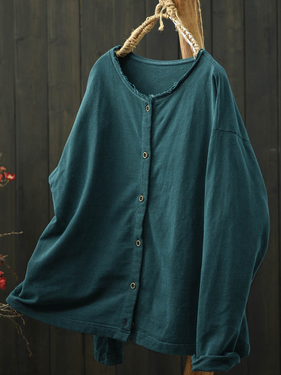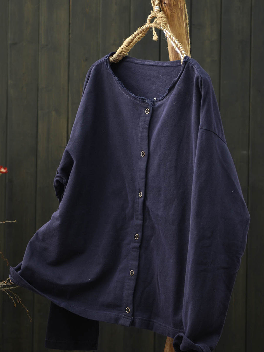 Camisa feminina Artsy Spring de algodão lisa com gola redonda