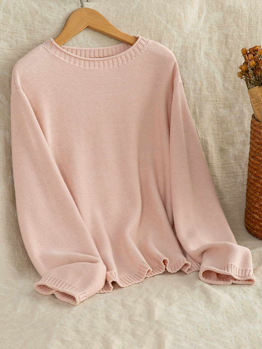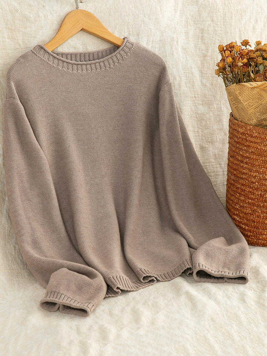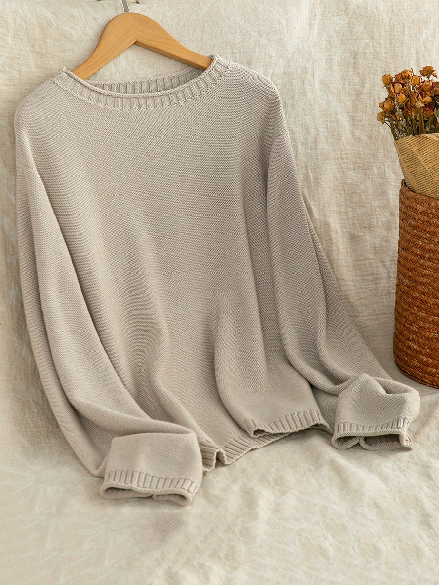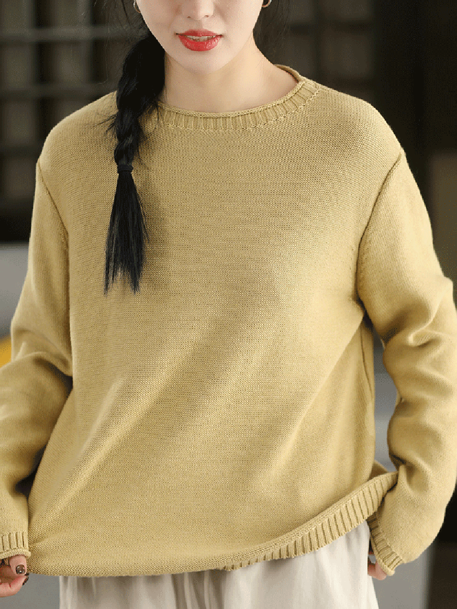 Suéter feminino Artsy Spring de cor pura com decote redondo.