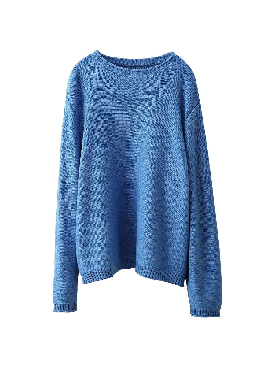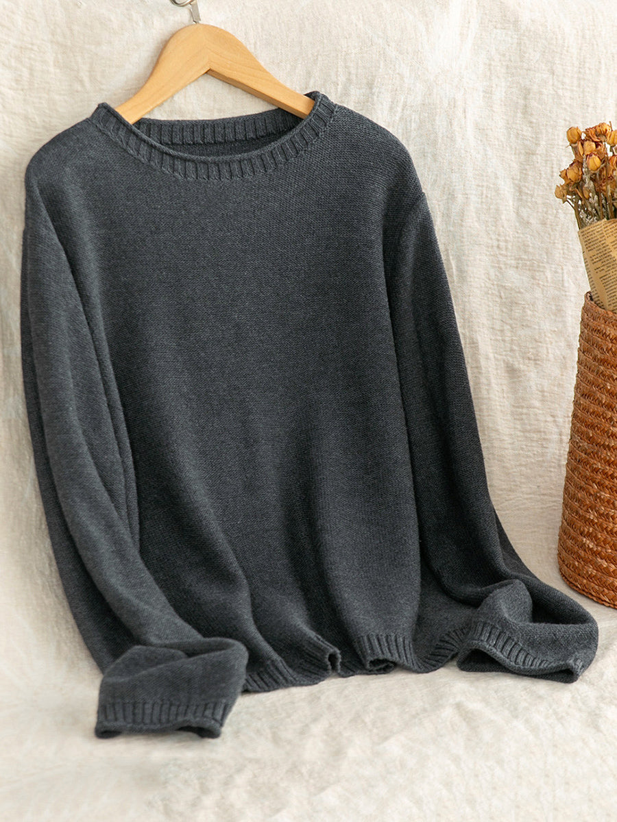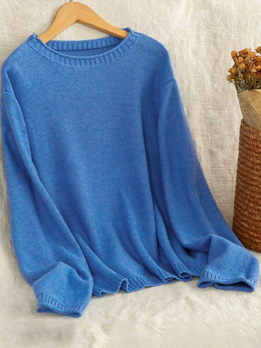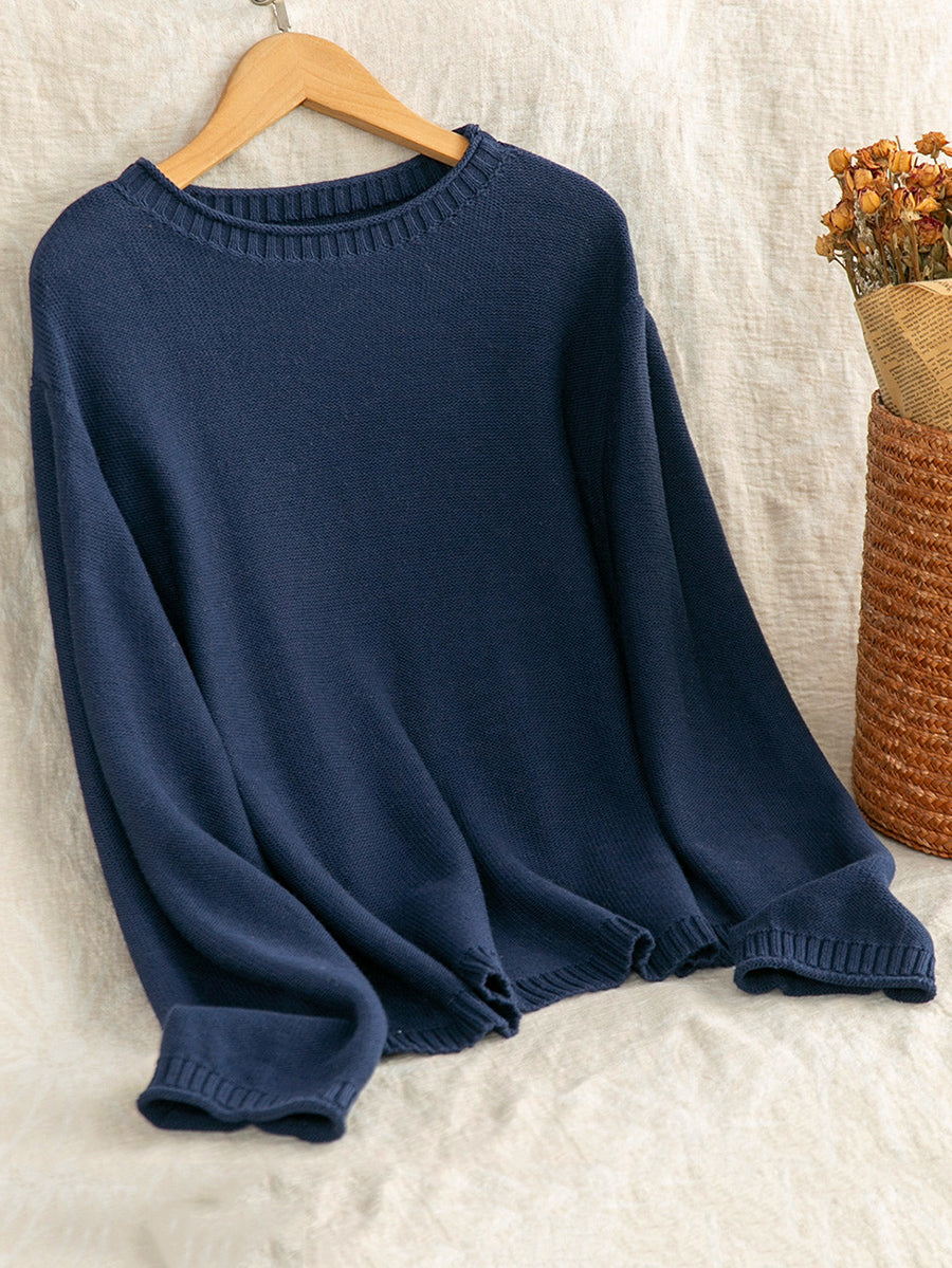 Suéter feminino Artsy Spring de cor pura com decote redondo.