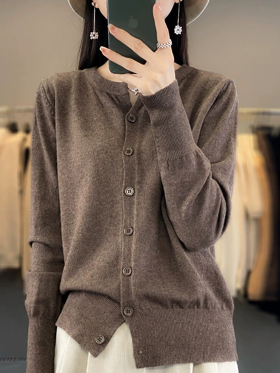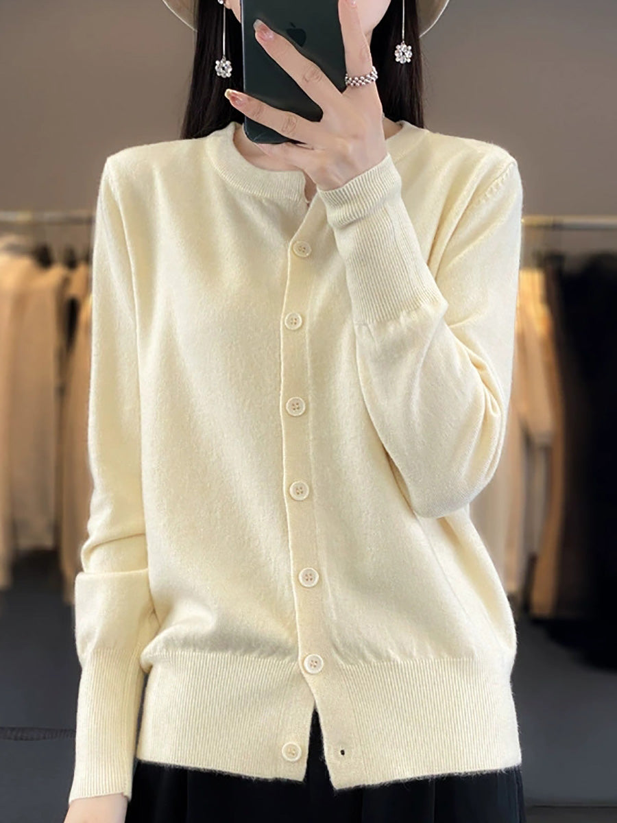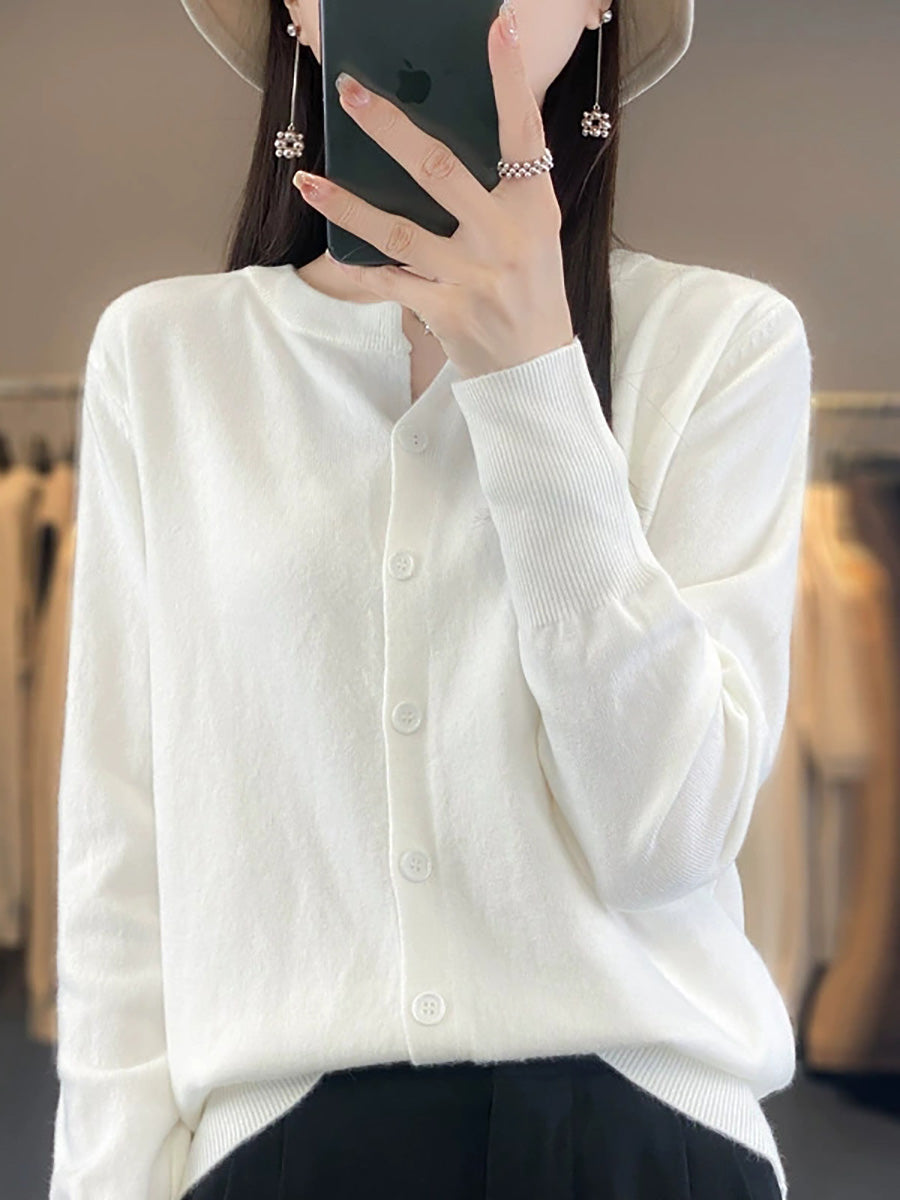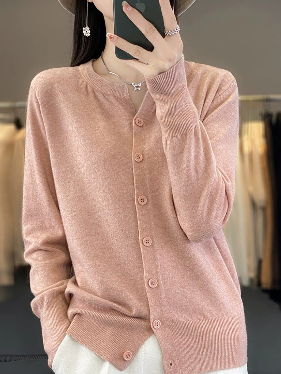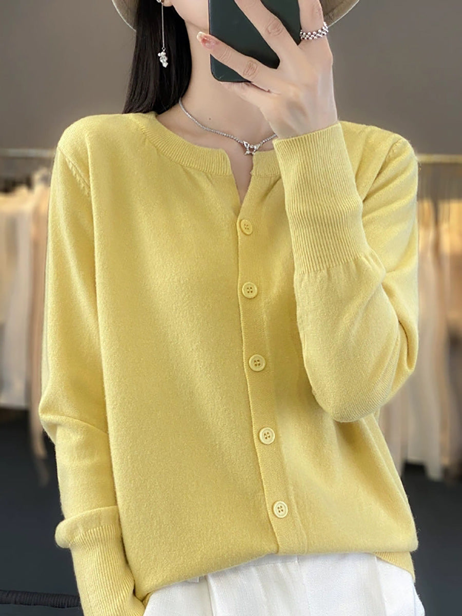 Suéter feminino Artsy Spring de cor pura com decote redondo.