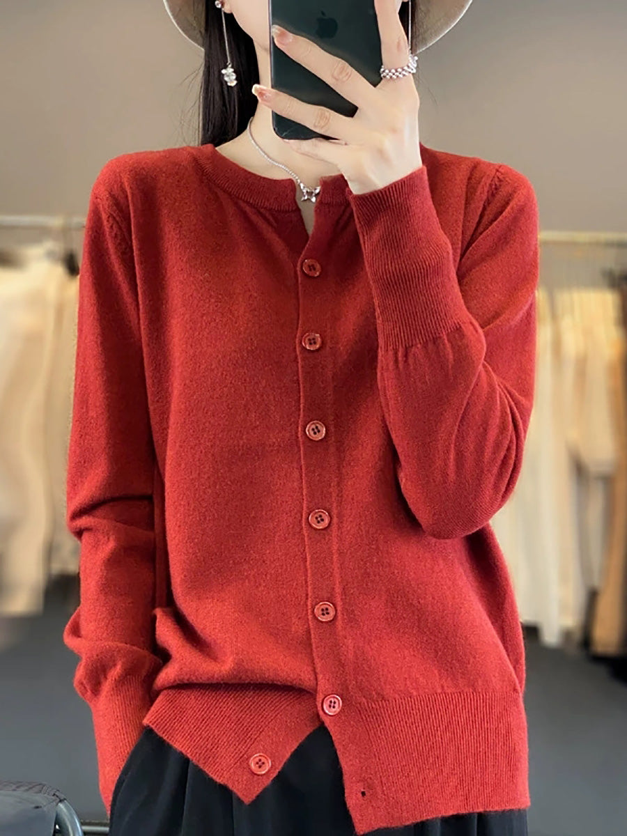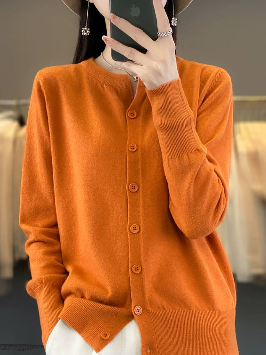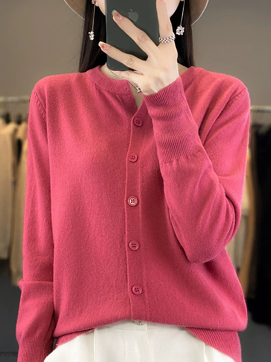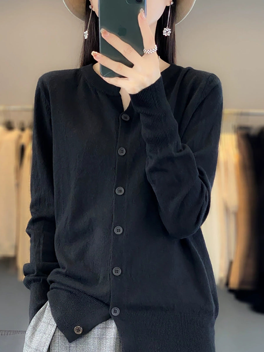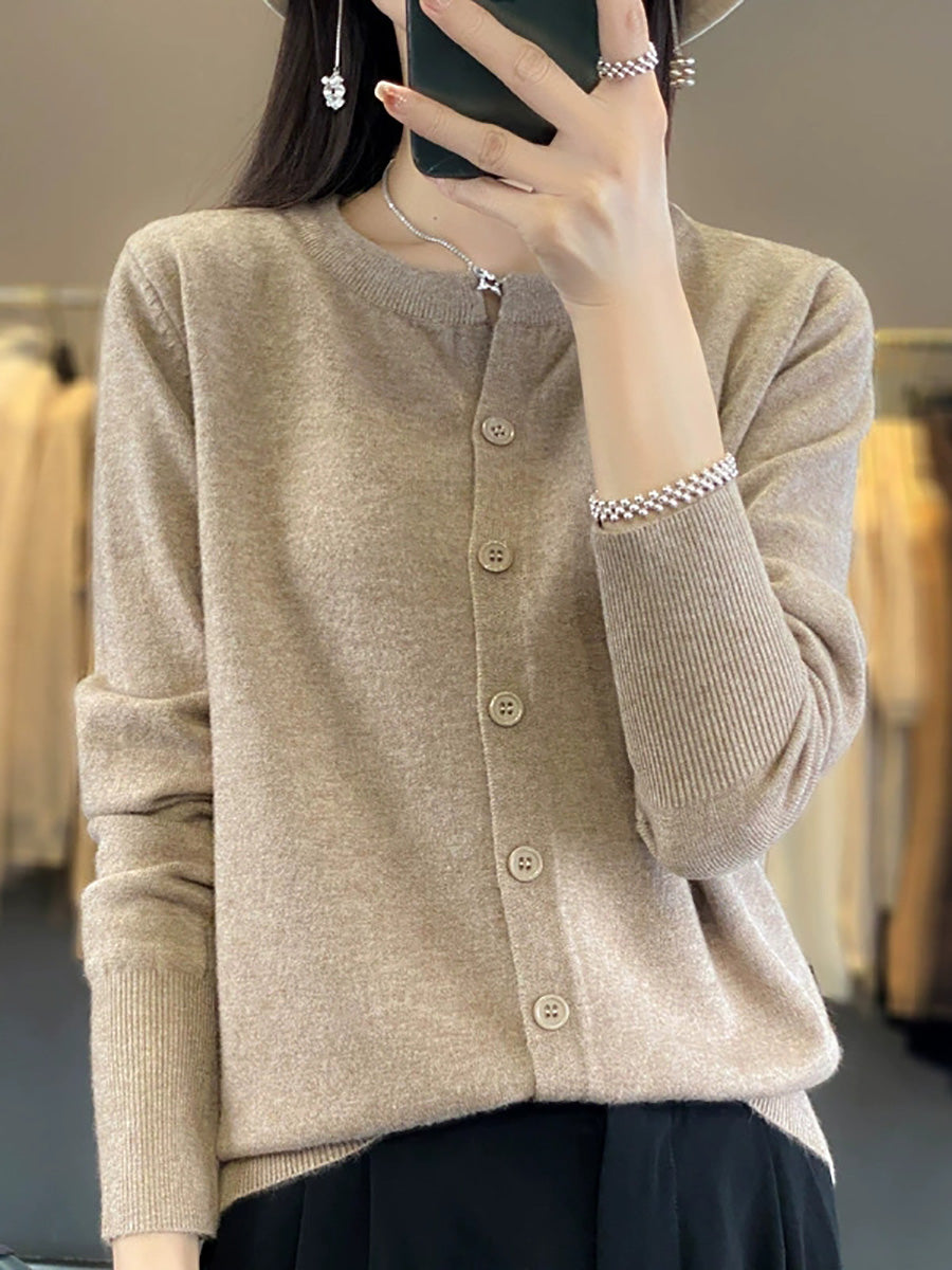 Suéter feminino Artsy Spring de cor pura com decote redondo.